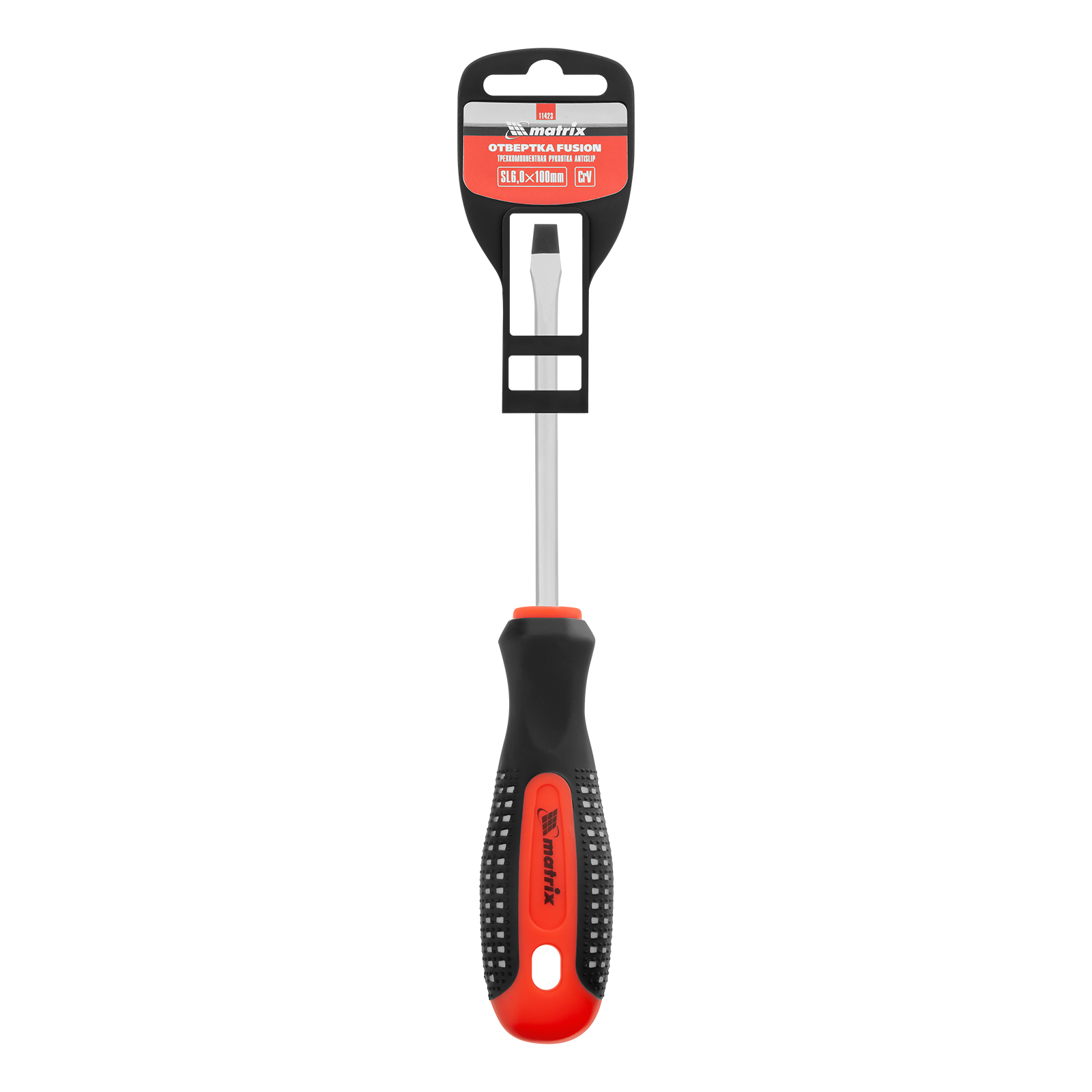 Отвертка Fusion, SL6 х 100 мм, CrV, трехкомпонентная рукоятка "Anti slip" Matrix в Екатеринбурге