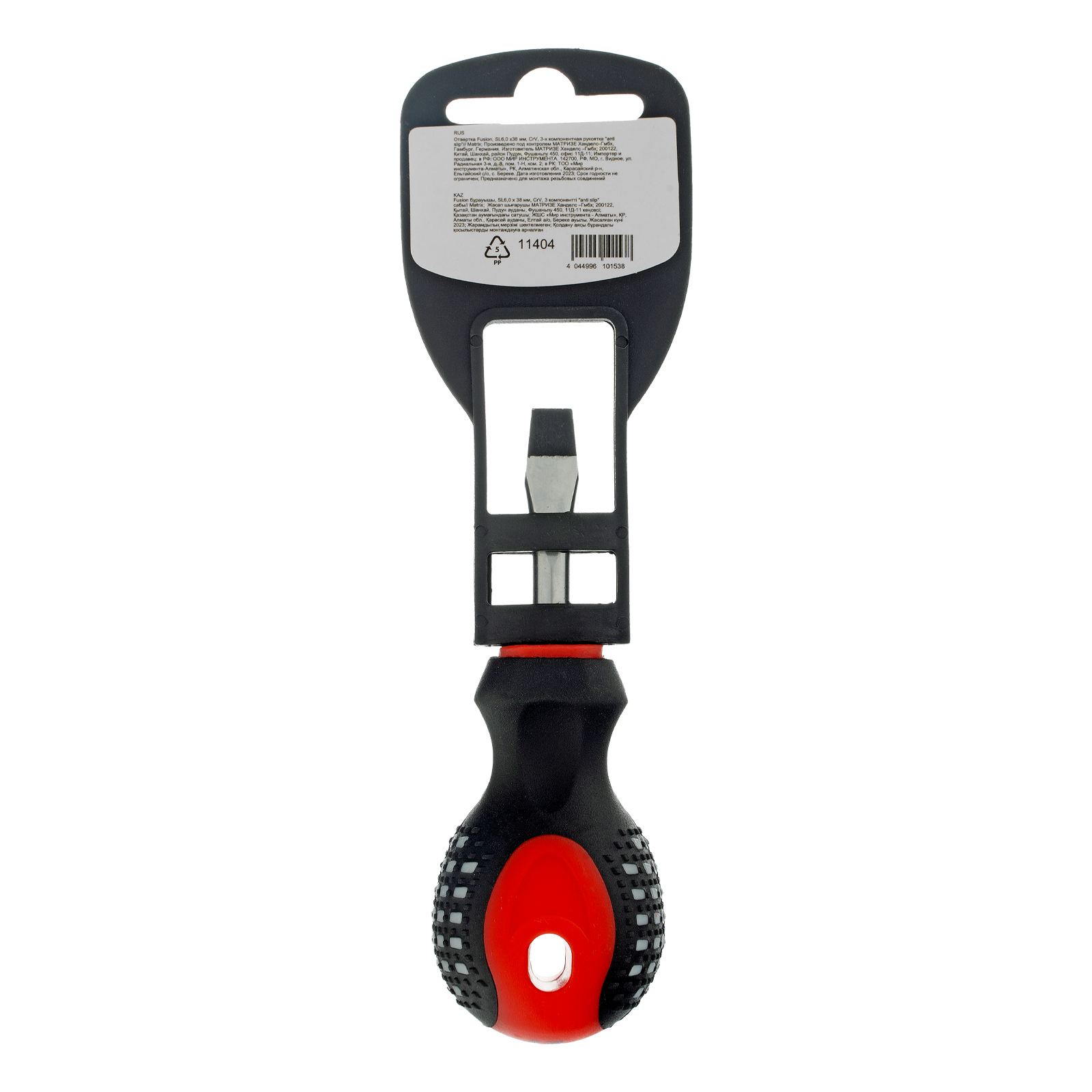 Отвертка Fusion, SL6 х 38 мм, CrV, трехкомпонентная рукоятка "Anti slip" Matrix в Екатеринбурге