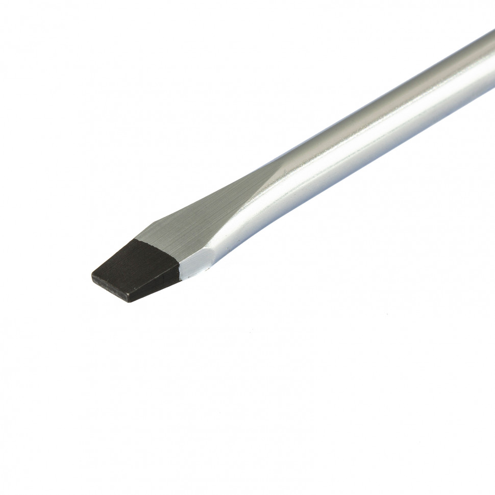 - Твердость и прочность обеспечивается высоким качеством материалов: стержень выполнен из стали CrV, а жало — из закаленной инструментальной стали S2.
