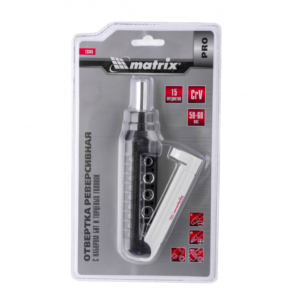 Отвертка реверсивная с набором бит и торцевых головок, 15 шт, CrV Matrix Pro в Екатеринбурге