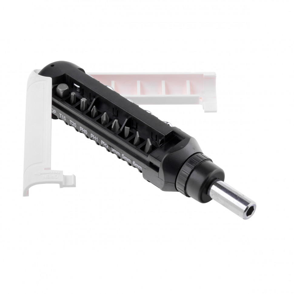 - Удобное хранение и транспортировка — для бит и торцевых головок предусмотрены отсеки в корпусе отвертки.