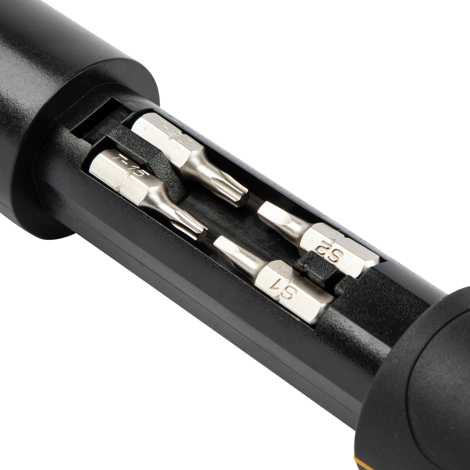 - Долговечность — биты в наборе выполнены из прочной японской стали S2 твердостью 54-56 HRC, что обеспечивает их износостойкость.