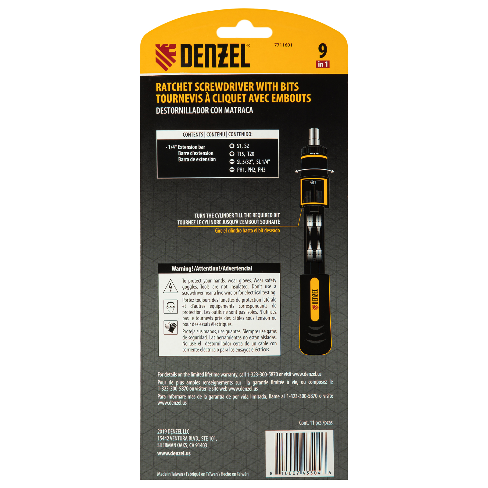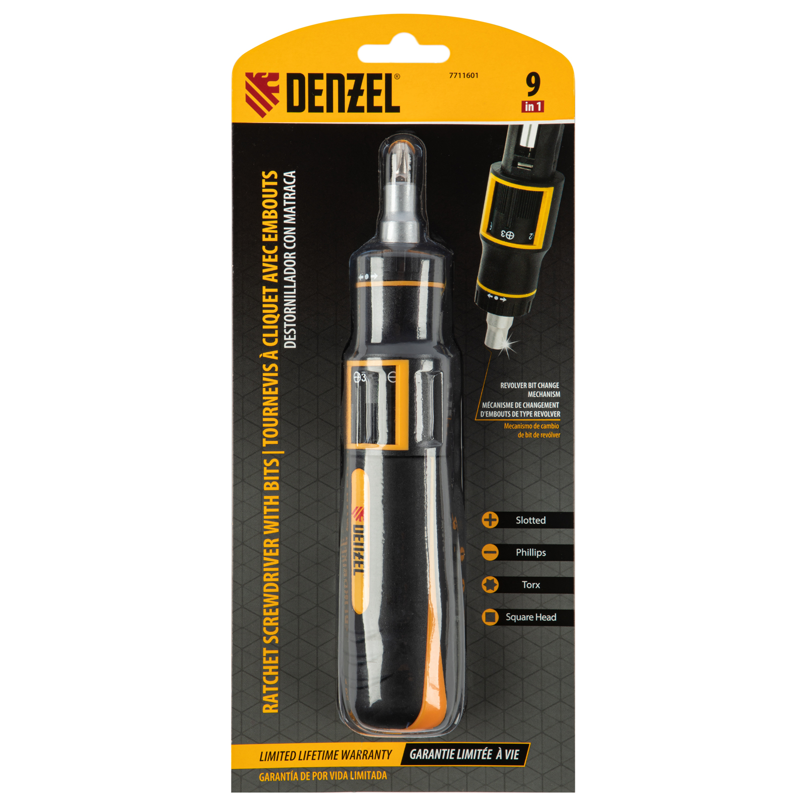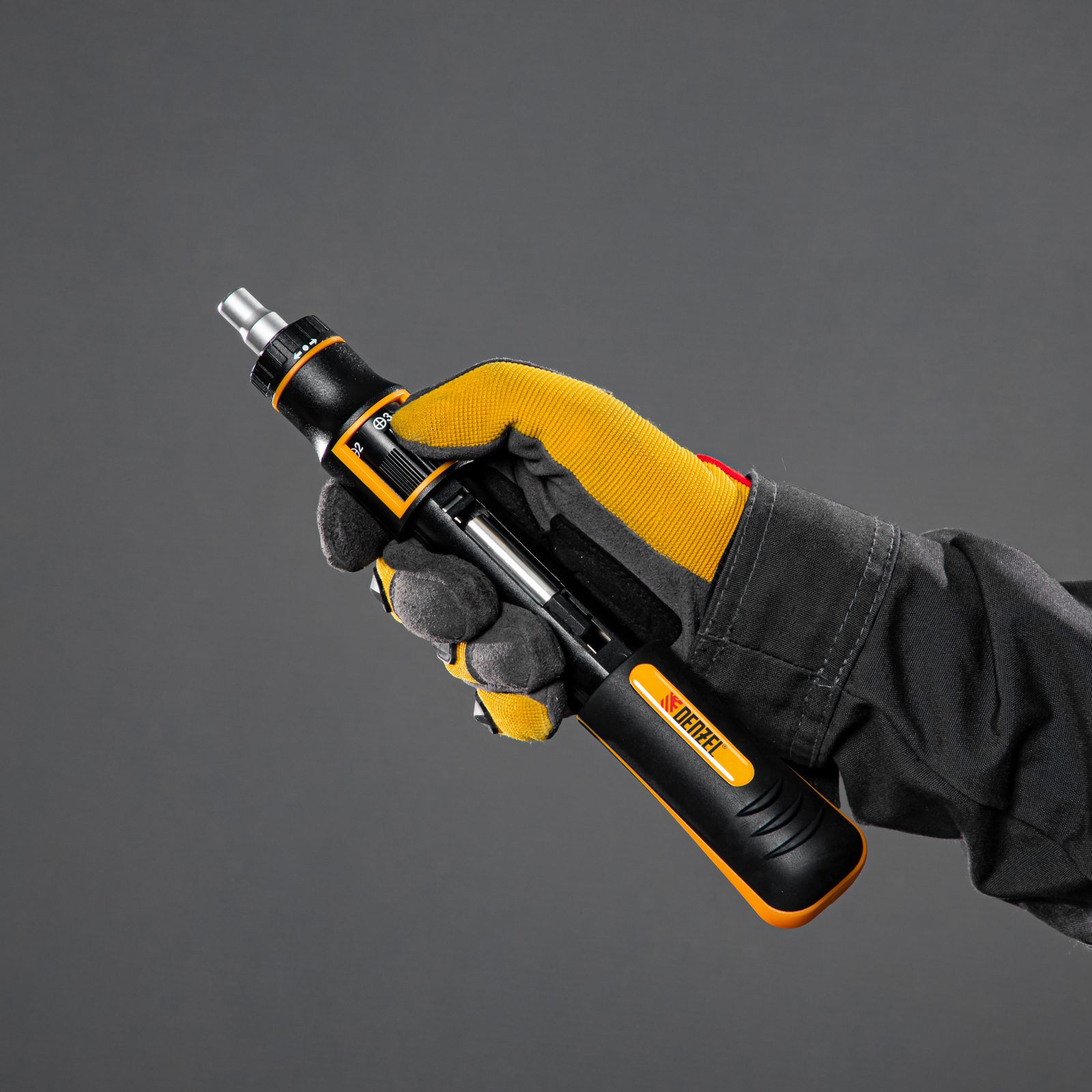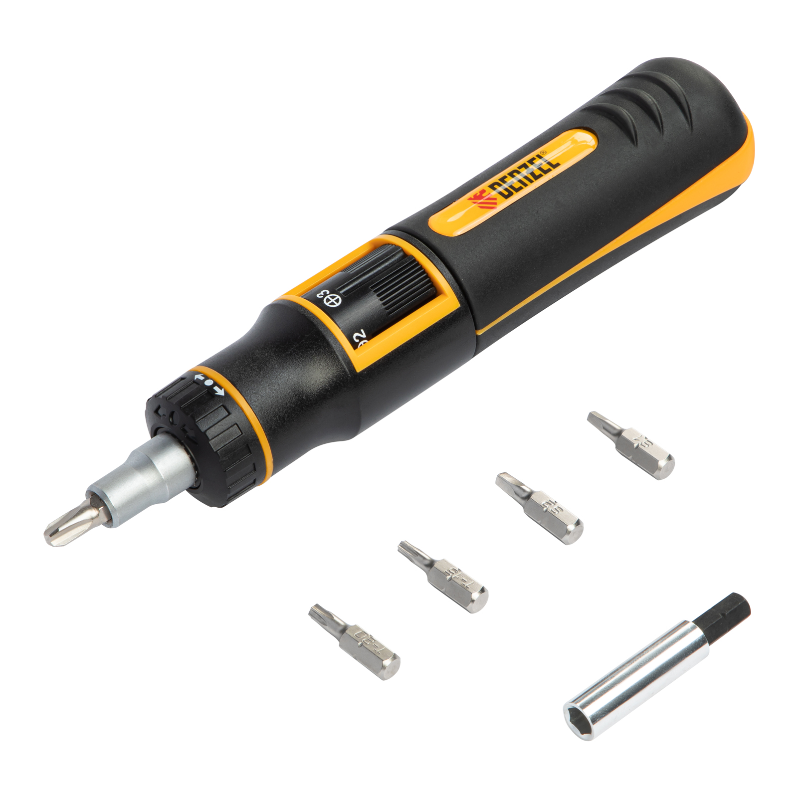 Отвертка реверсивная с револьверным механизмом, 11 шт, сталь S2 Denzel в Екатеринбурге
