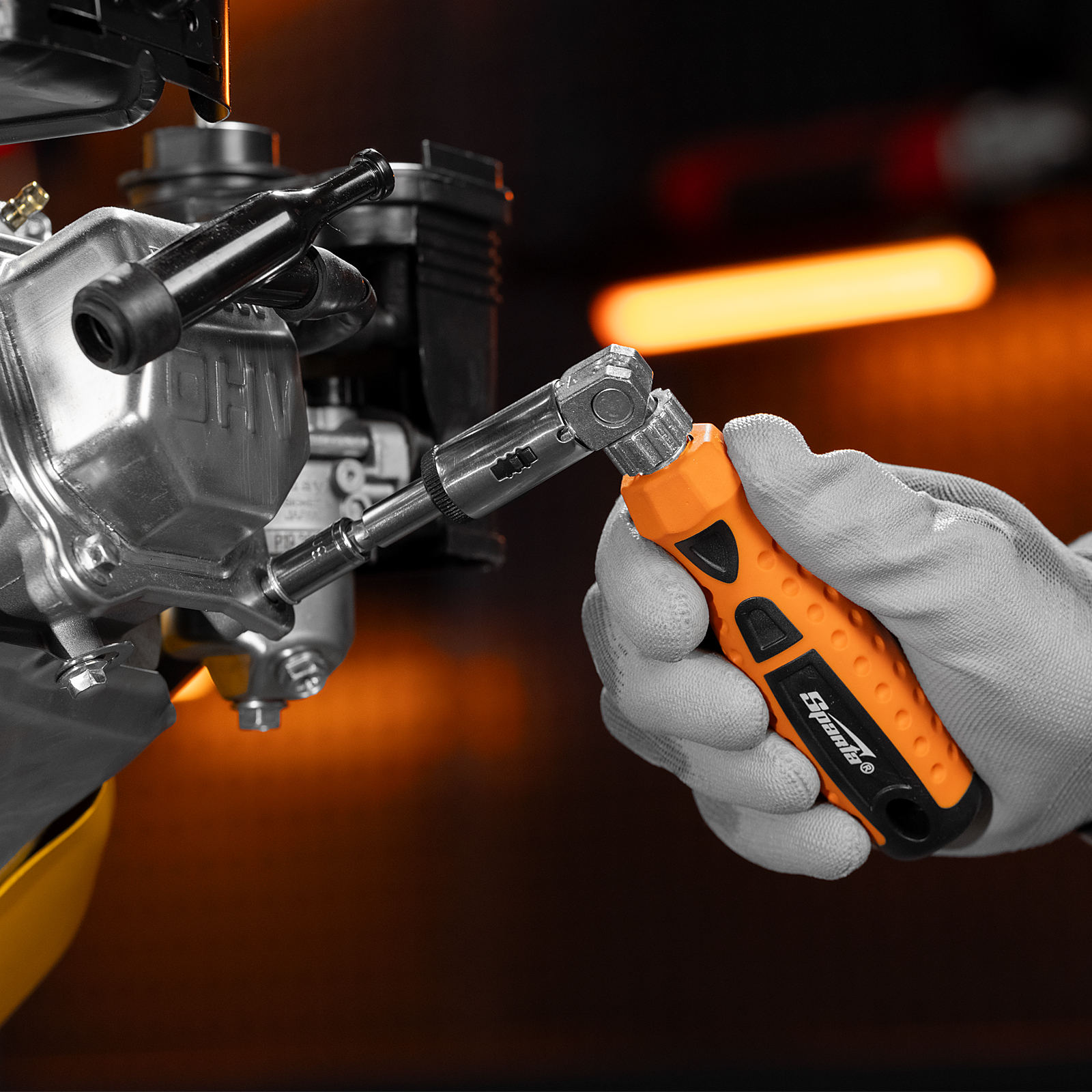 - Поворотная голова с пятипозиционной фиксацией обеспечивает возможность работы в труднодоступных местах и ограниченном пространстве.