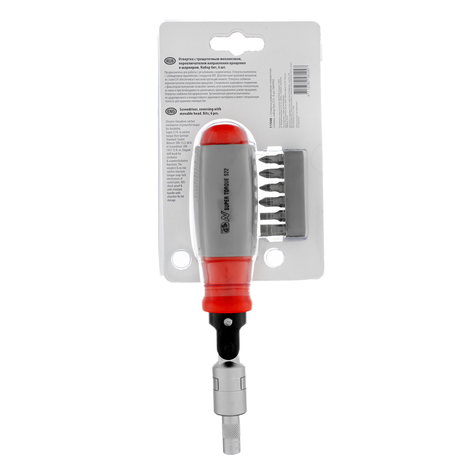 Отвертка реверсивная, поворотная головка, набор бит, CrV, 6 шт Matrix в Екатеринбурге