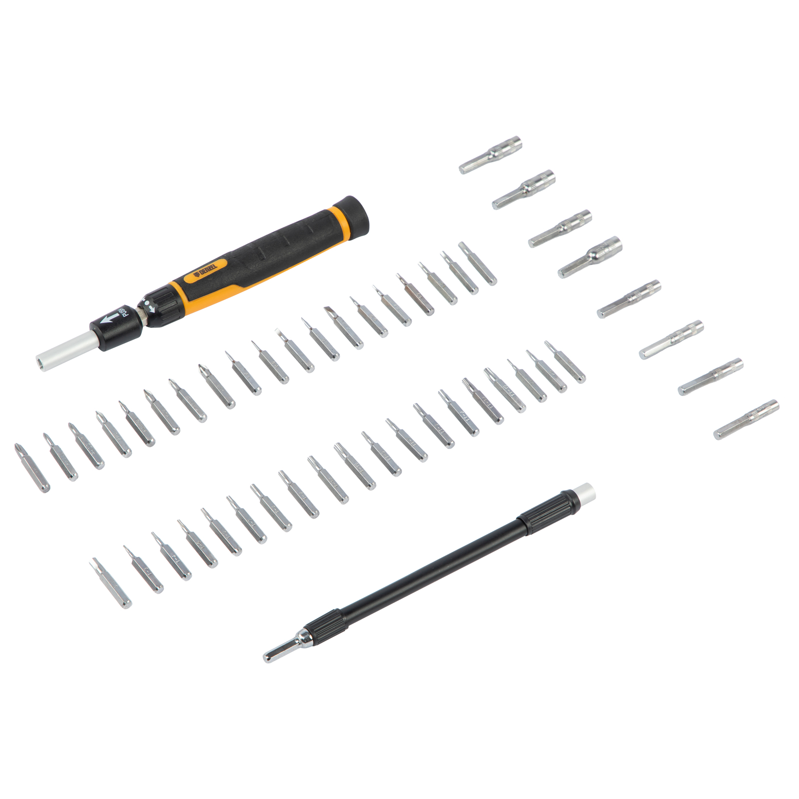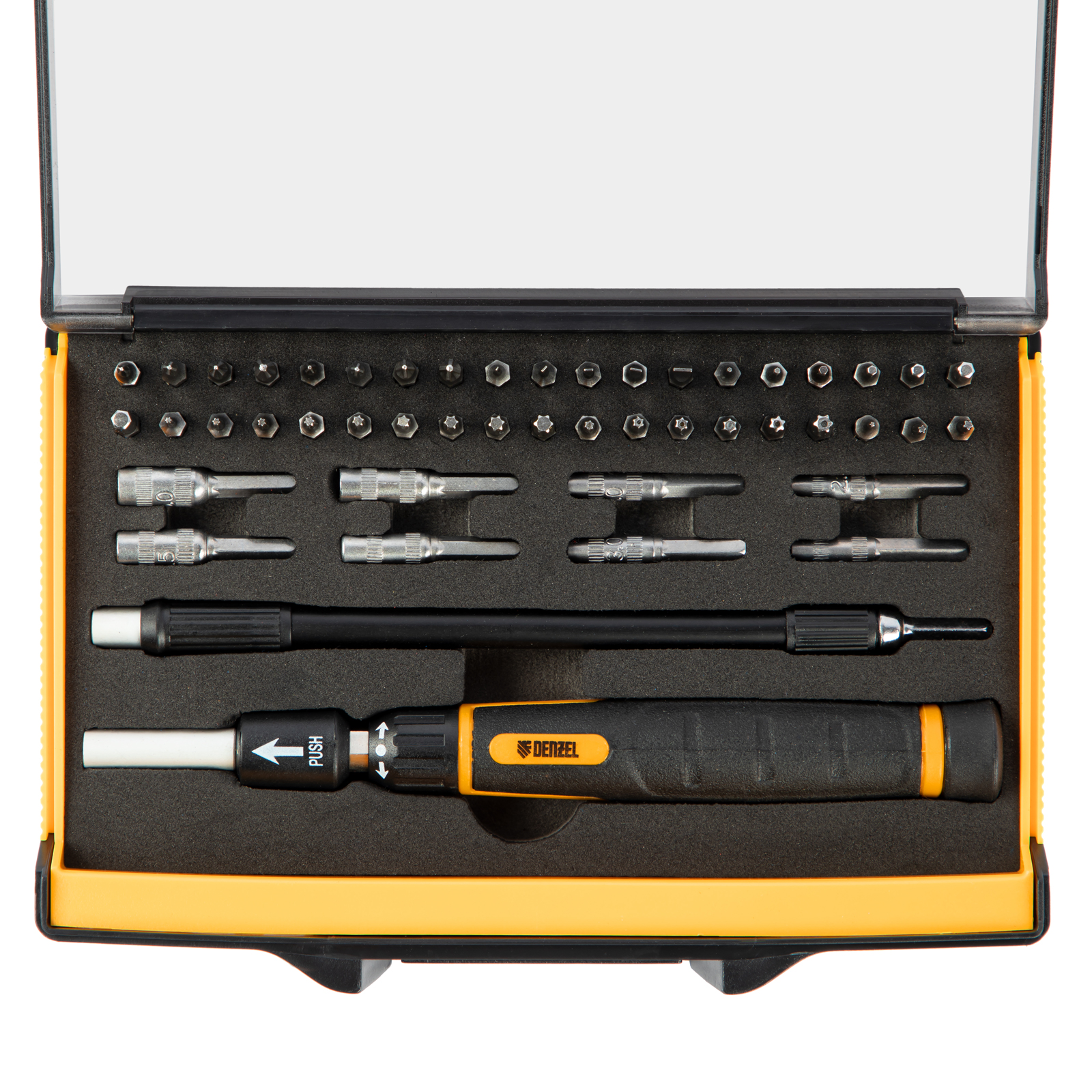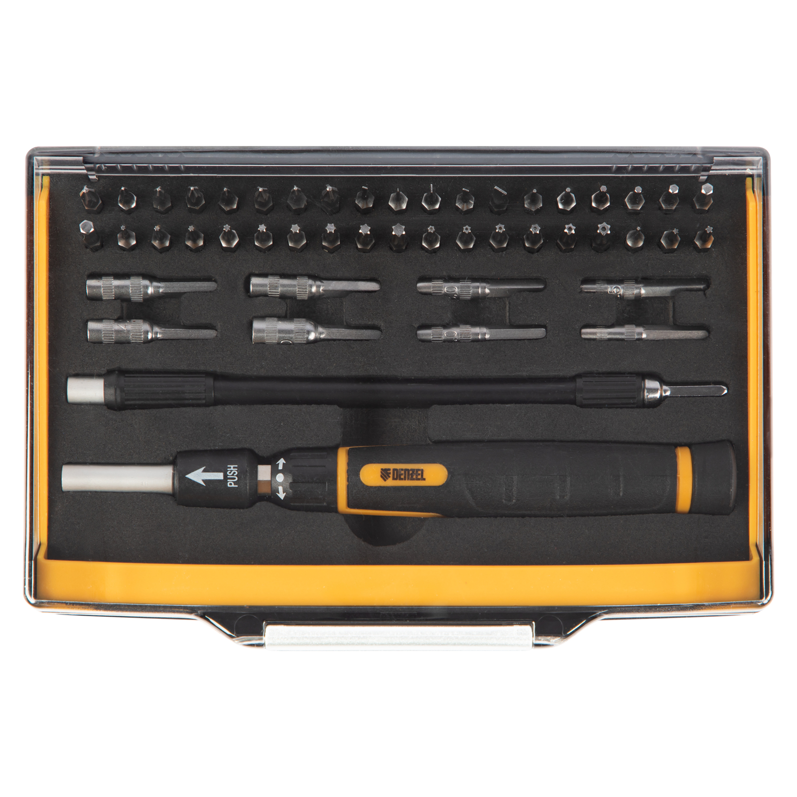 Отвертка с набором бит и торцевых головок для точных работ, гибкий привод, 48 шт, CrMo Denzel в Екатеринбурге