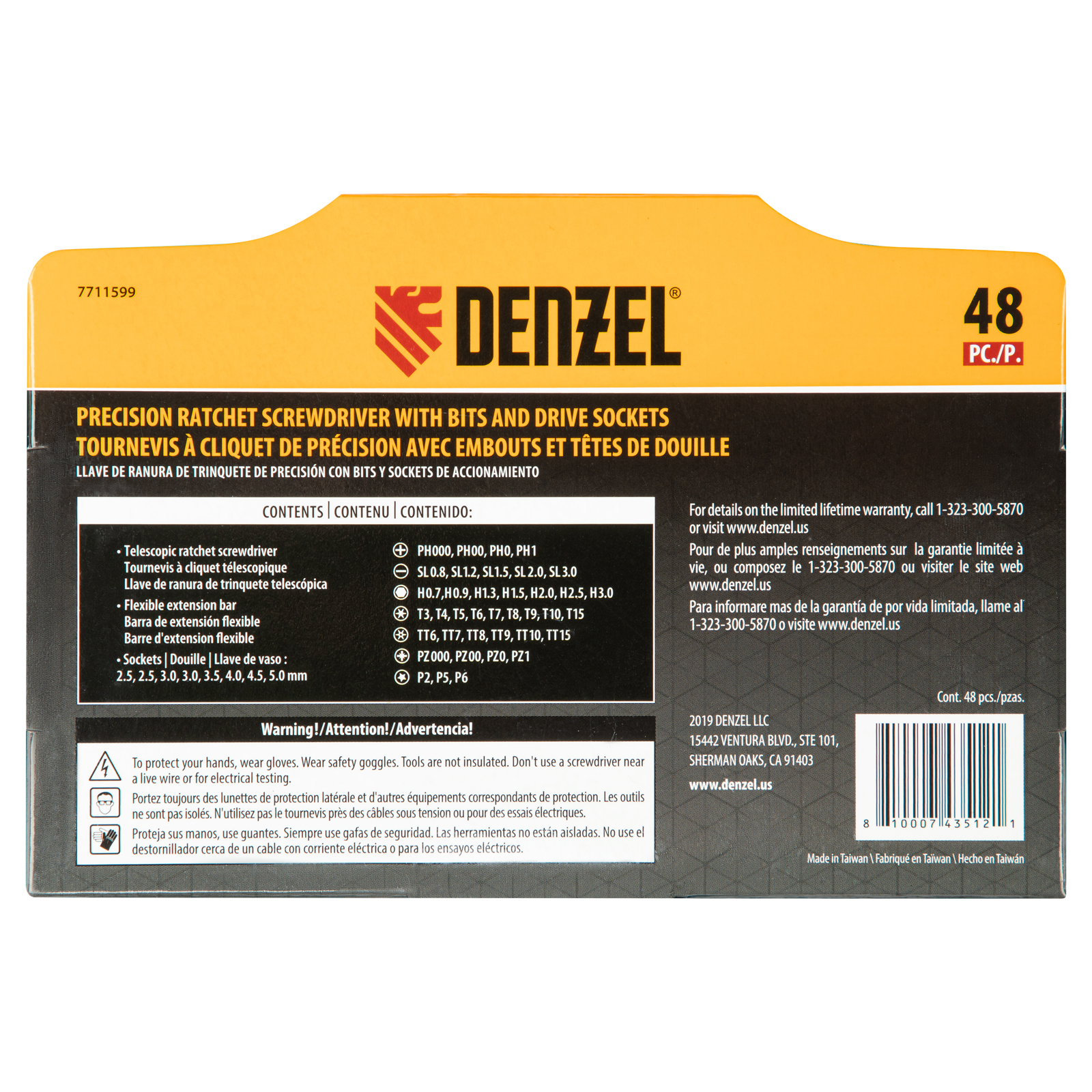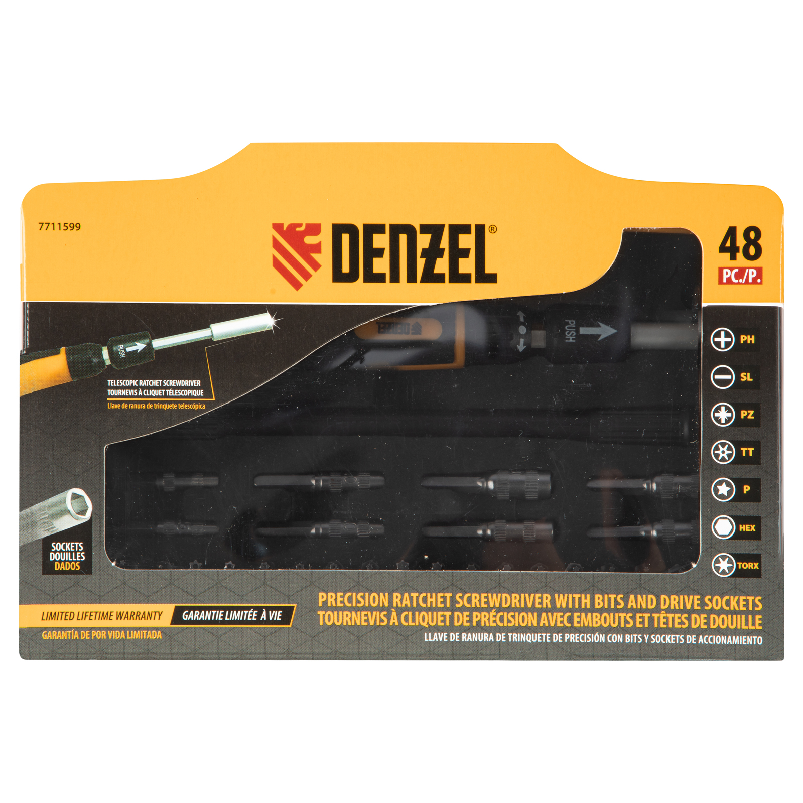 Отвертка с набором бит и торцевых головок Denzel 7711599, с гибким приводом, входит в набор из 48 предметов из стали CrMo и предназначена для выполнения точных работ. С ее помощью можно отремонтировать очки, игрушки, портативную и бытовую технику и т.д. Выдвижной стержень и гибкий удлинитель позволяют работать с мелкими деталями в углублениях и труднодоступных местах.