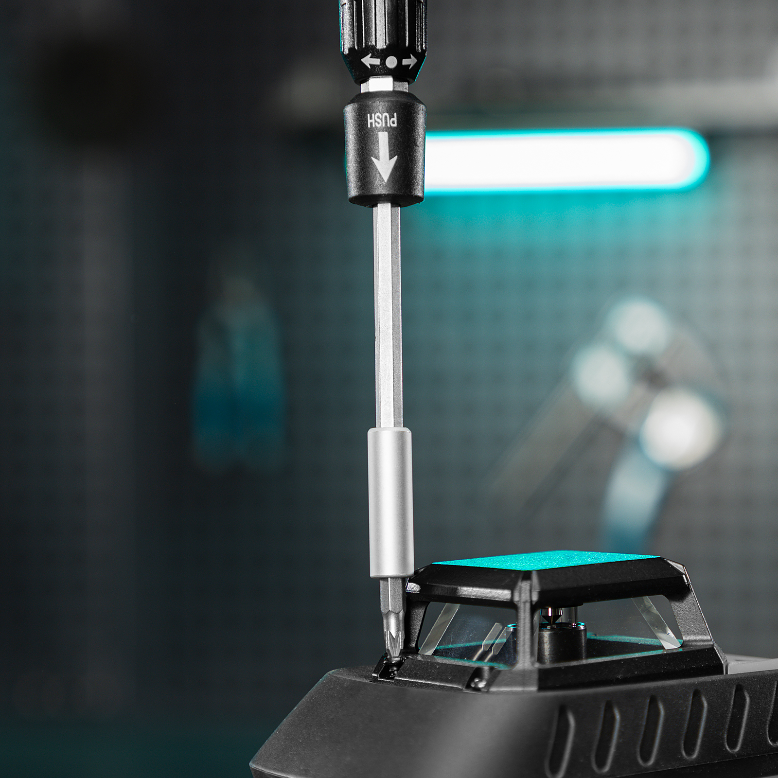 - Намагниченные биты позволяют легко доставать металлический крепеж из углублений и насаживать его одной рукой.