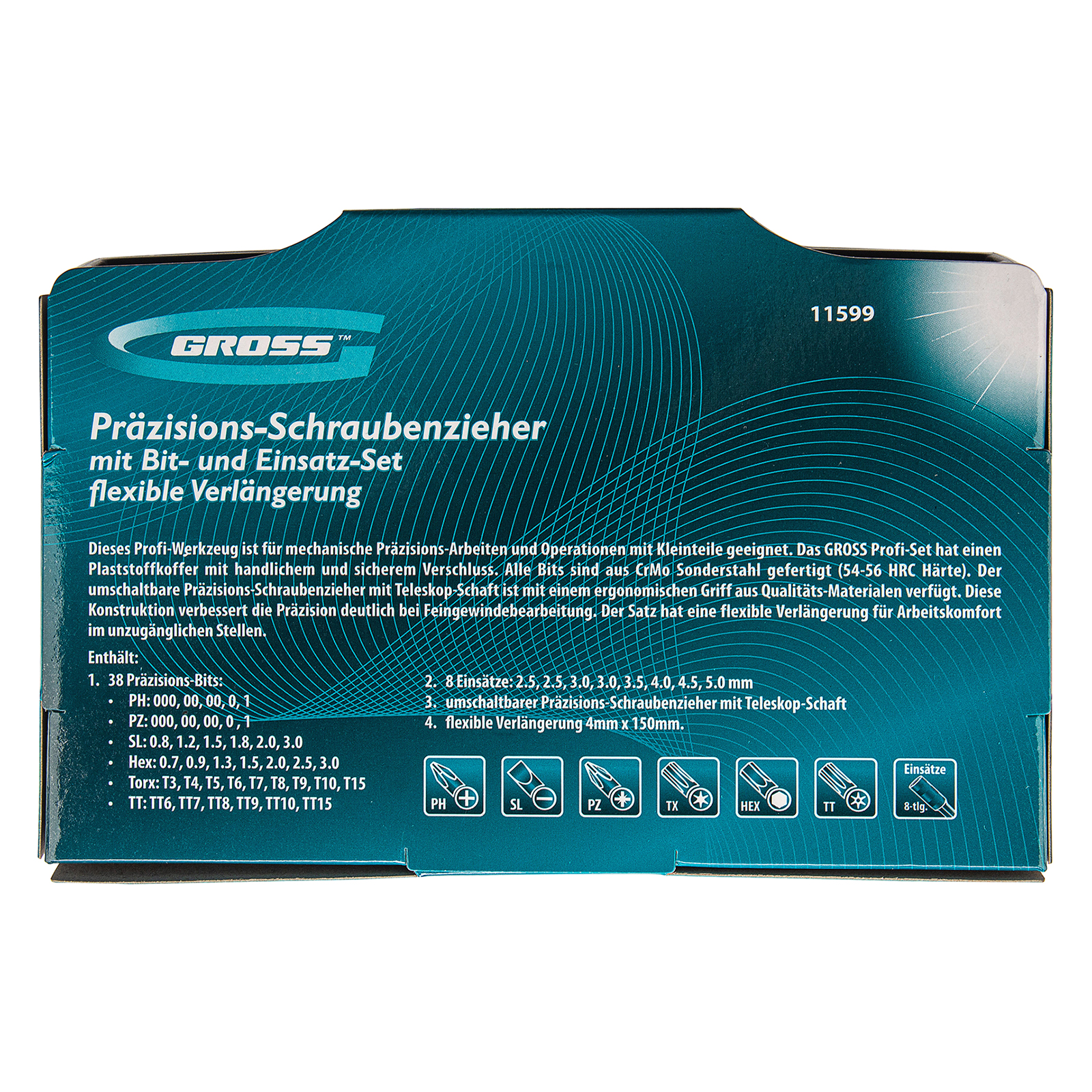 Отвертка с набором бит и торцевых головок для точных работ, гибкий привод, 48 шт, CrMo Gross в Екатеринбурге
