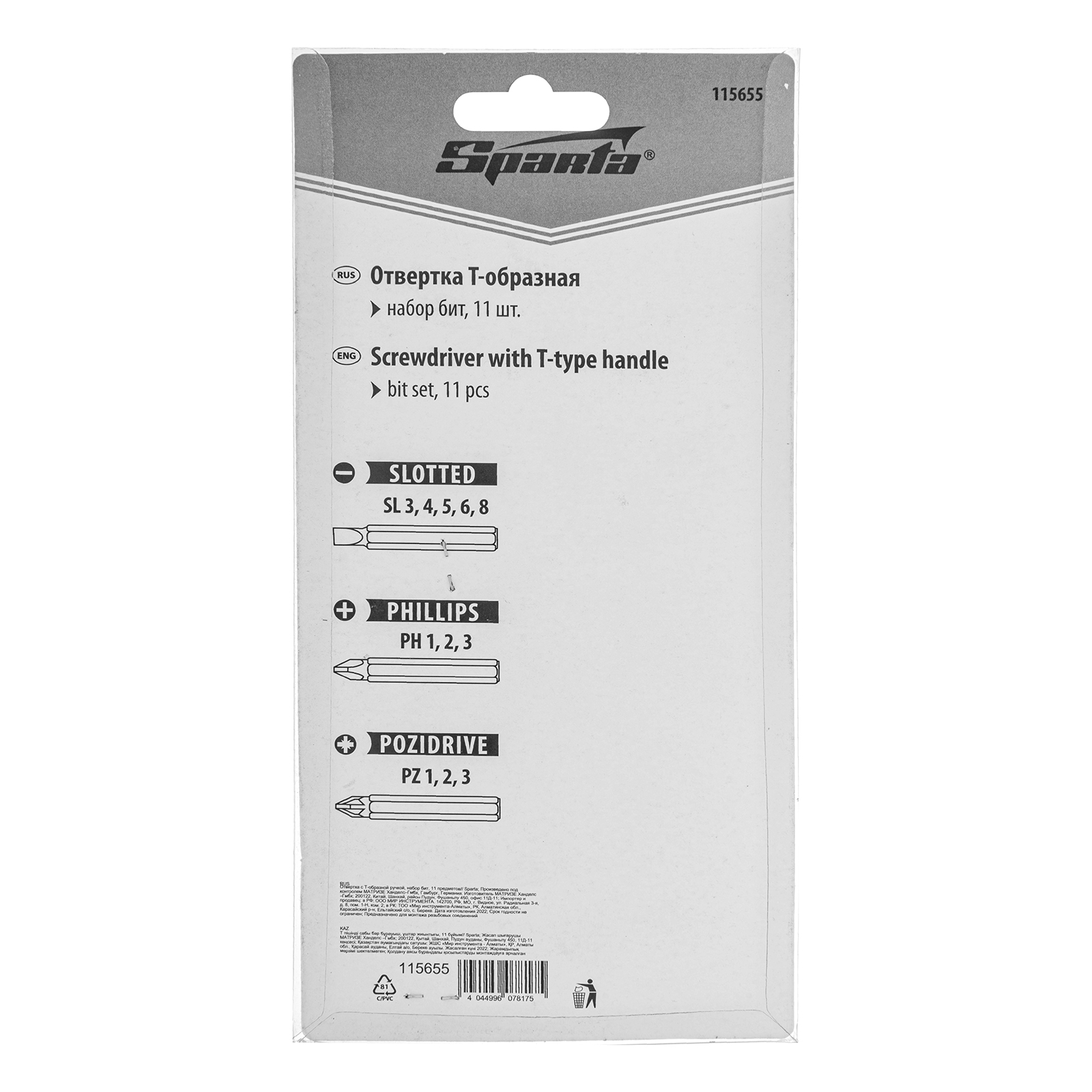 Отвертка с Т-образной ручкой, набор бит, 11 шт, Sparta в Екатеринбурге