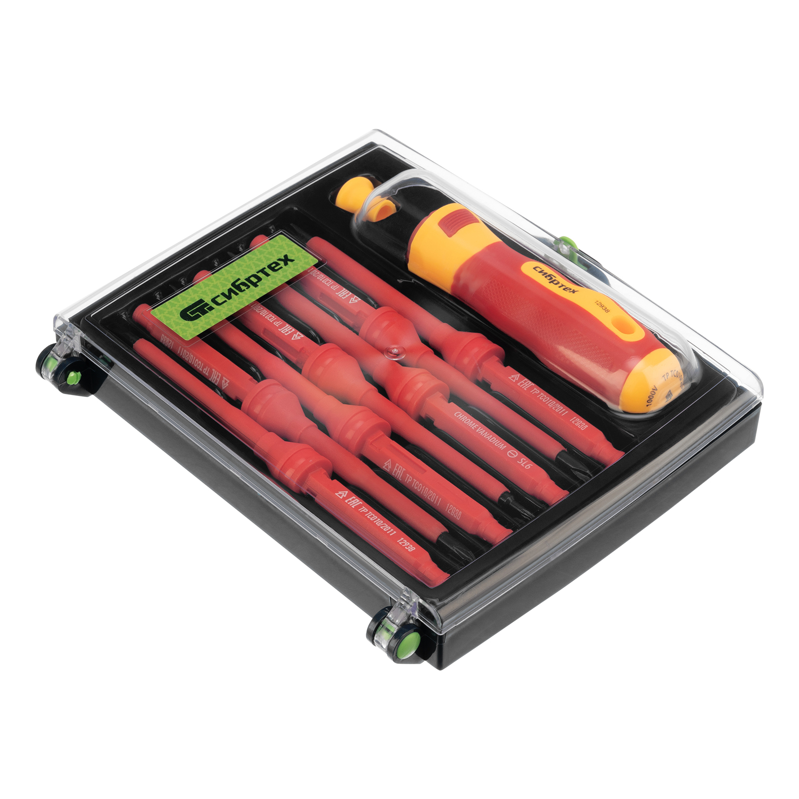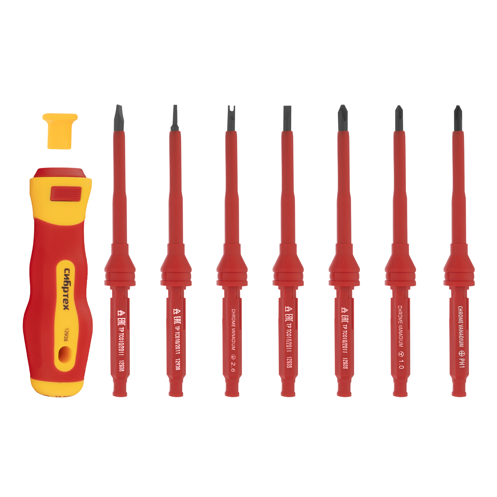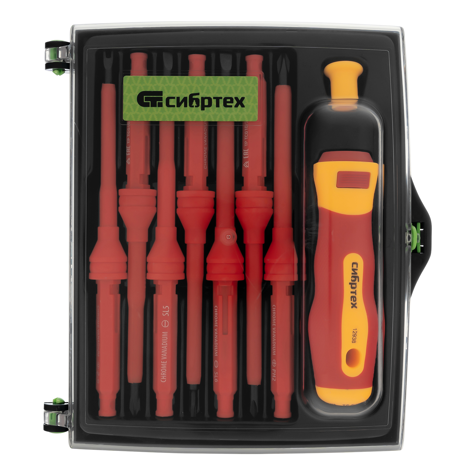 Отвертка со сменными жалами, диэлектрическая до 1000 В, 9 предметов, CrV Сибртех в Екатеринбурге