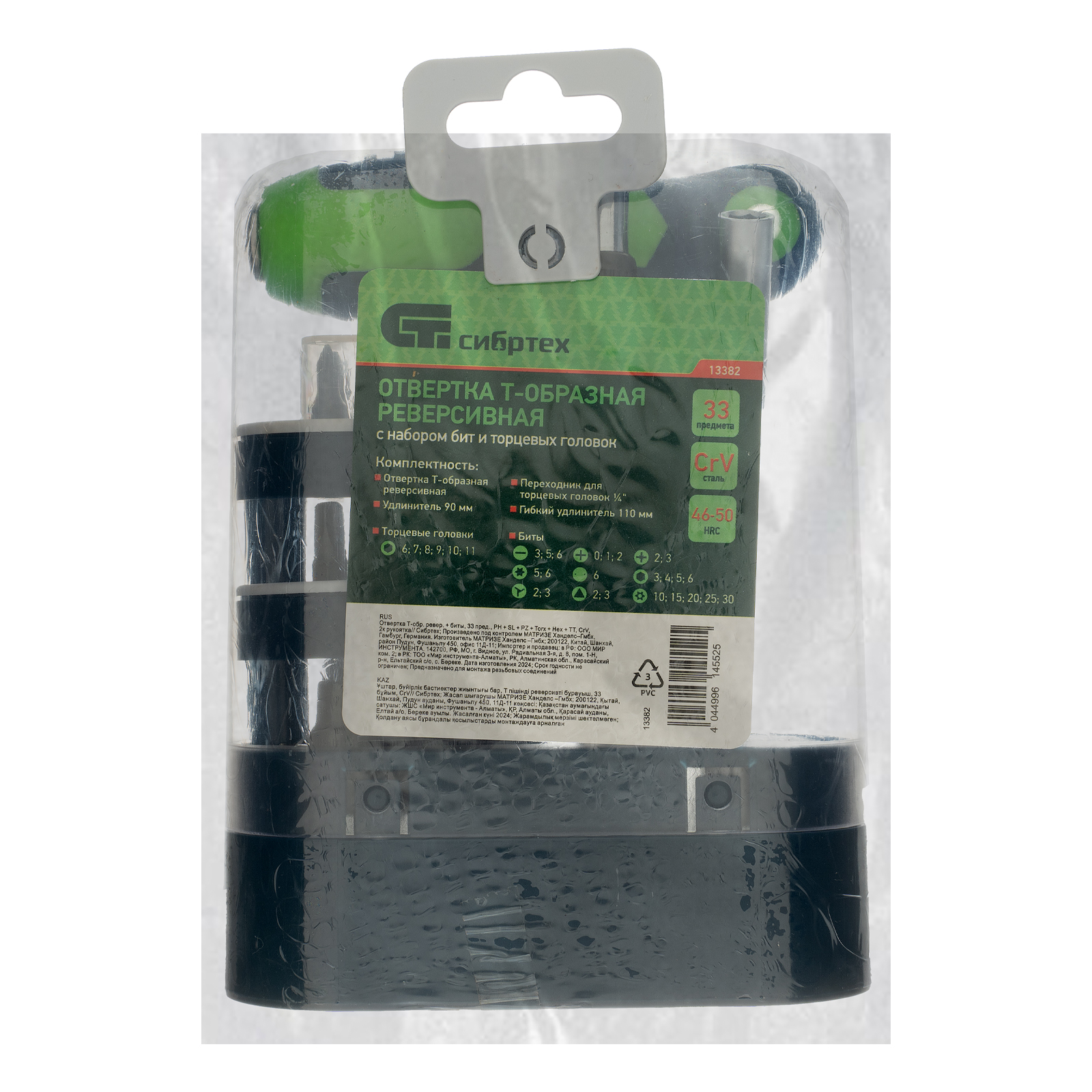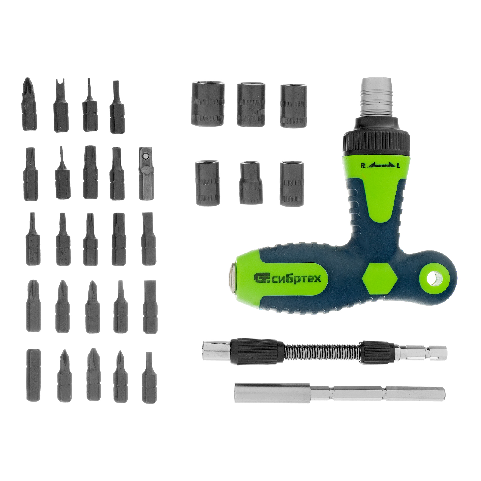 Отвертка Т-образная реверсивная с набором бит, торцевых головок, 33 предмета, CrV Сибртех в Екатеринбурге