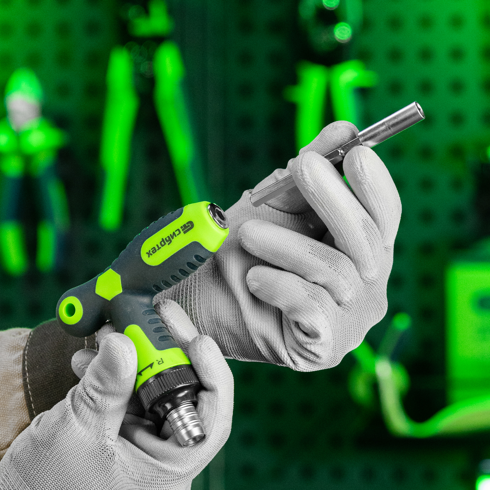 - Удобная работа в труднодоступных местах — в комплект входит удлинитель и гибкий адаптер.