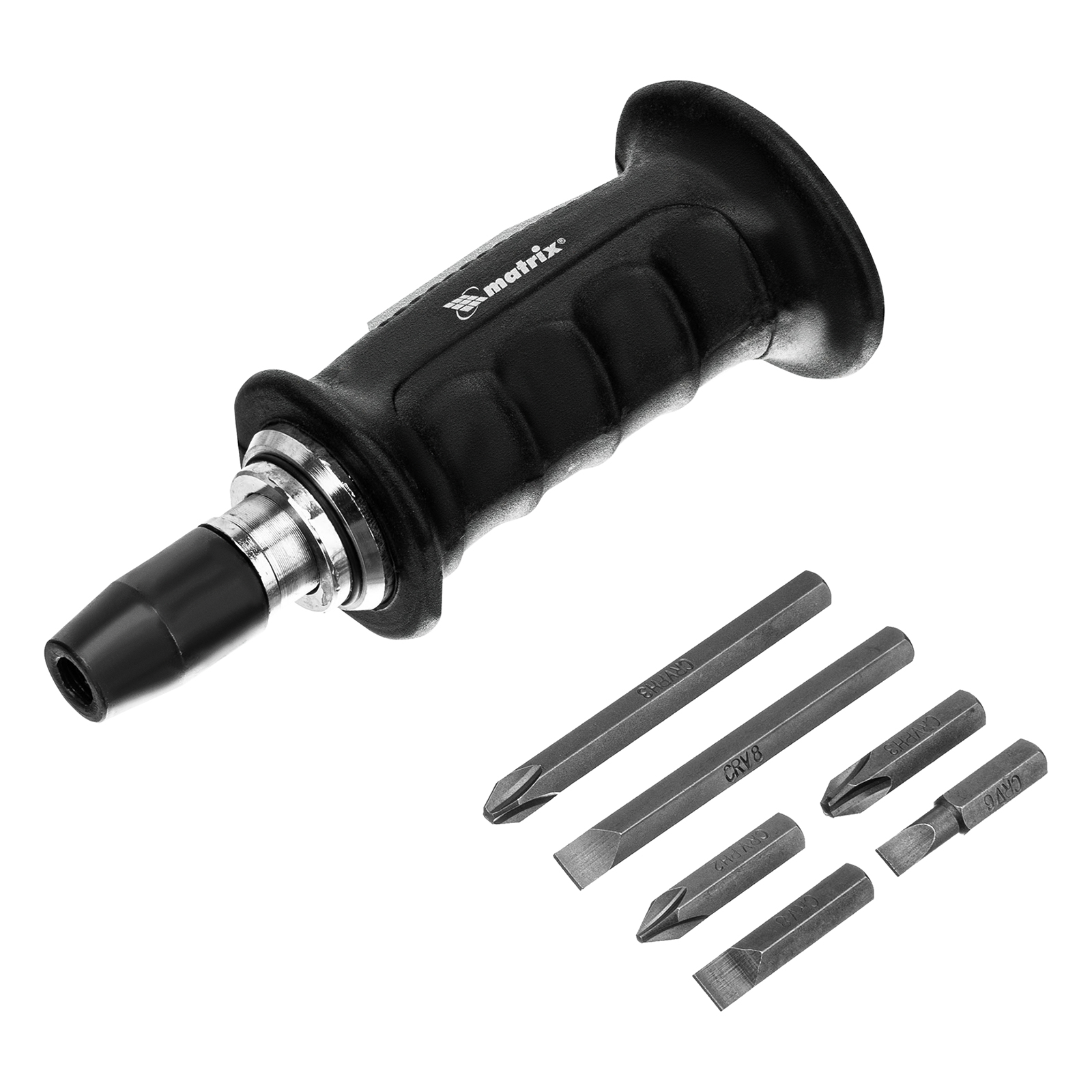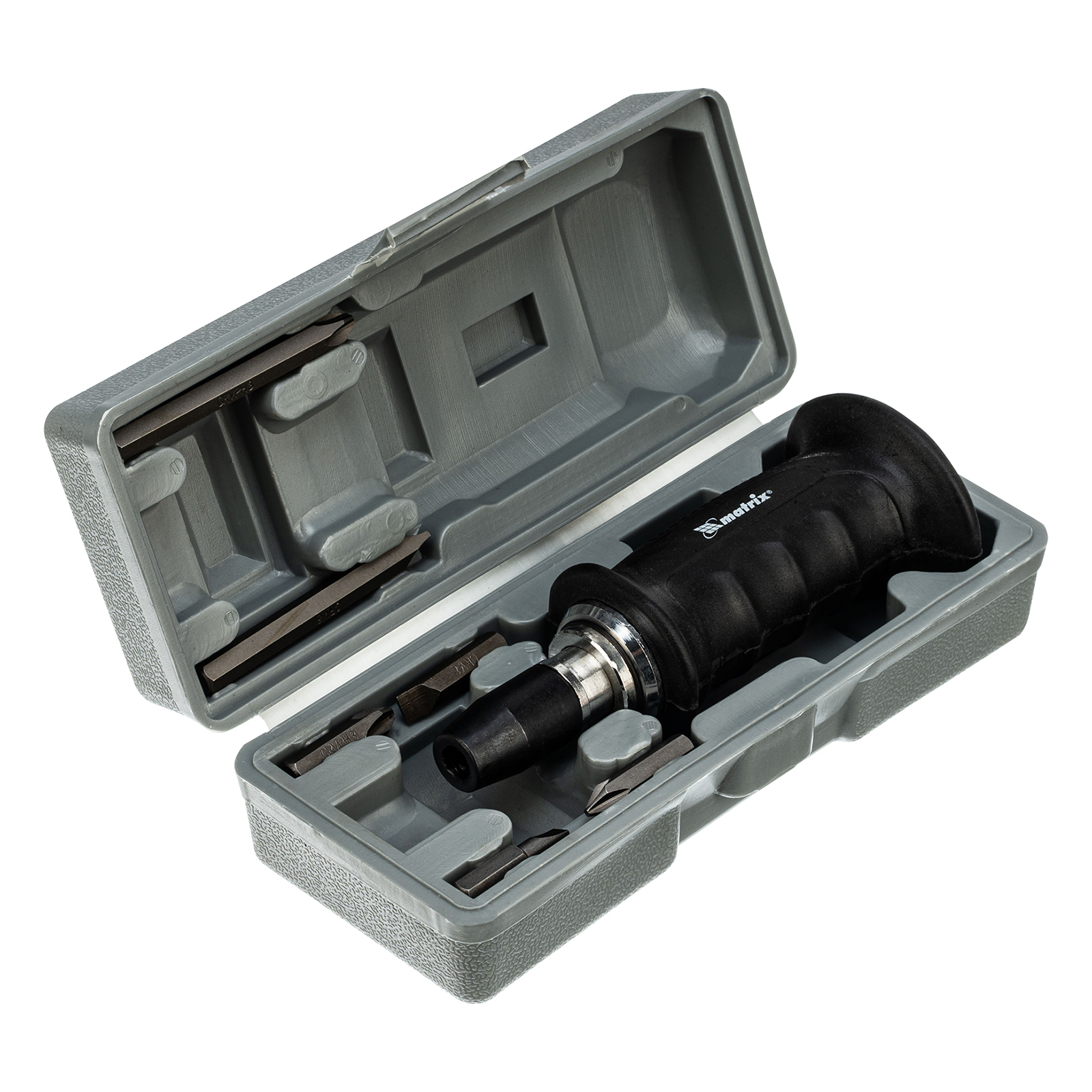 Отвертка ударно-поворотная 1/2, набор бит, 6 шт, черная ручка Профи, пластиковый бокс Matrix в Екатеринбурге