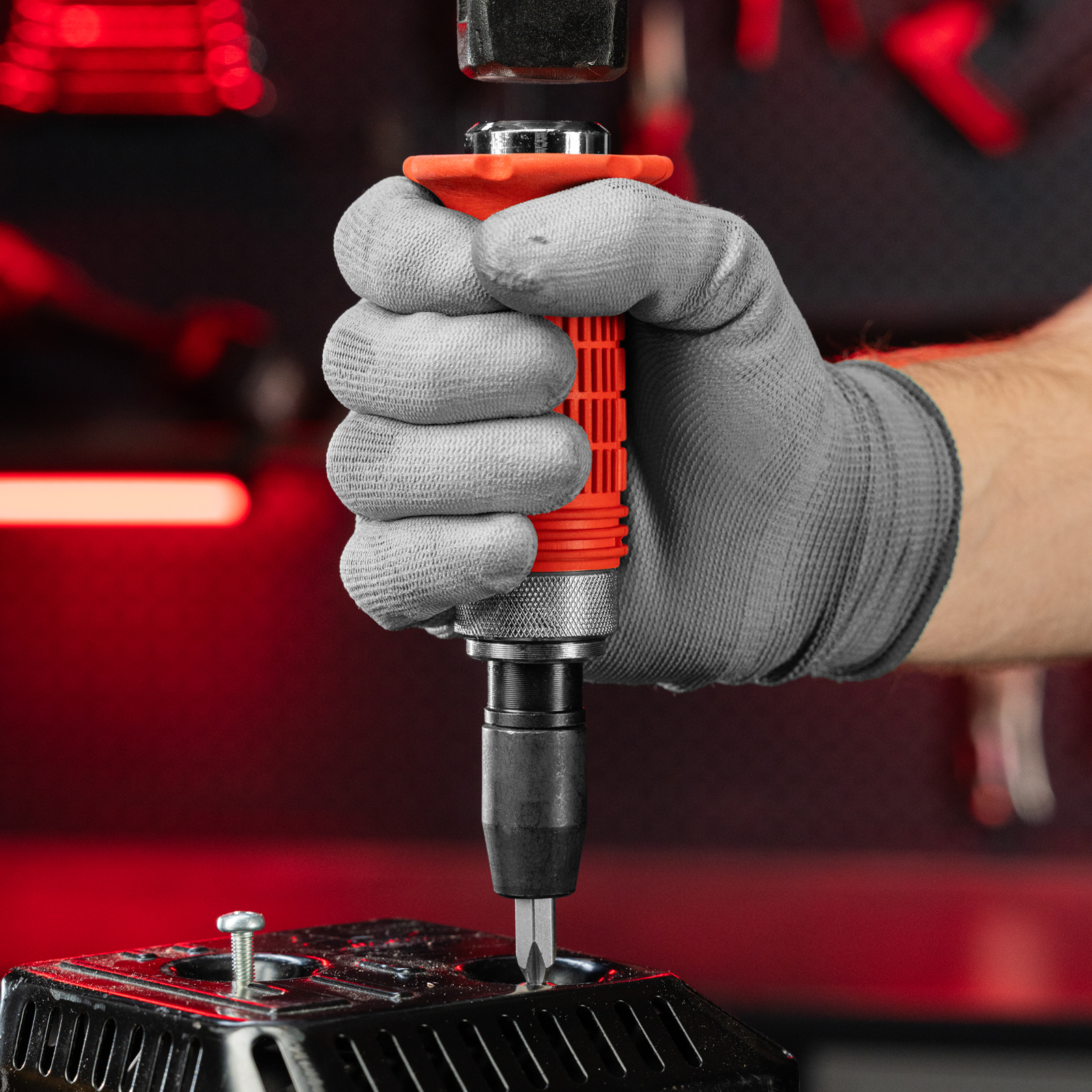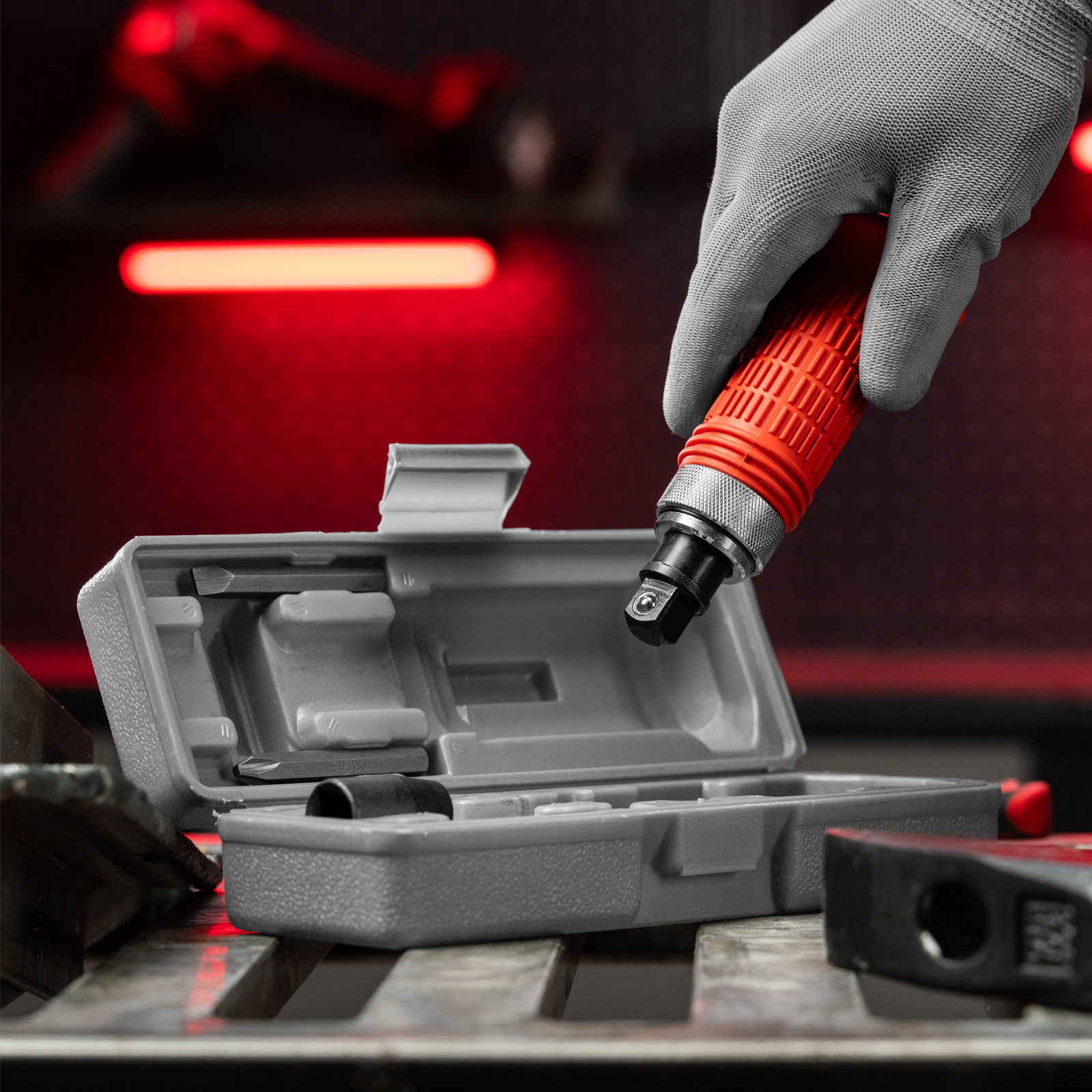 - Присоединительный квадрат 1/2 дюйма с шариковым фиксатором позволяет использовать отвертку с торцевыми головками.
