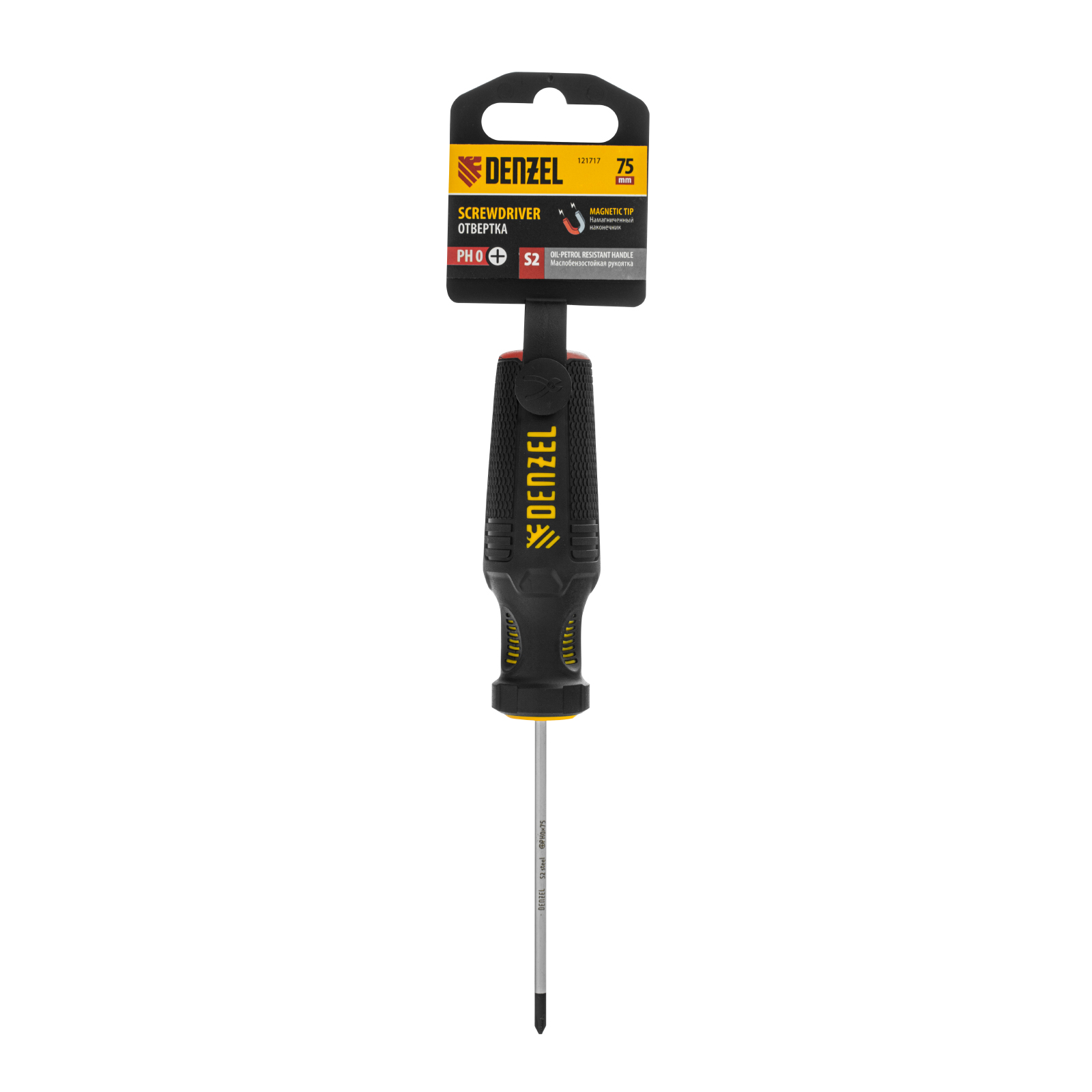Отвертка, PH0х75 мм, S2, 3к рукоятка Denzel в Екатеринбурге