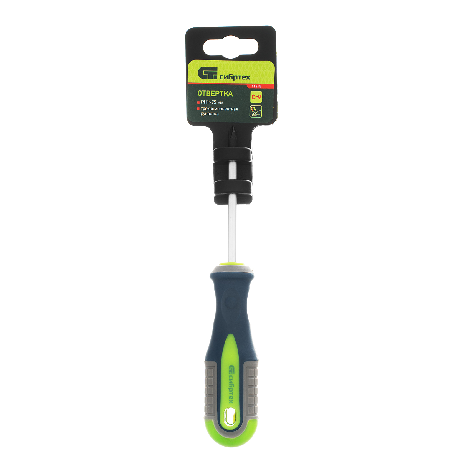 Отвертка, PH1 х 75 мм, CrV, трехкомпонентная рукоятка Сибртех в Екатеринбурге