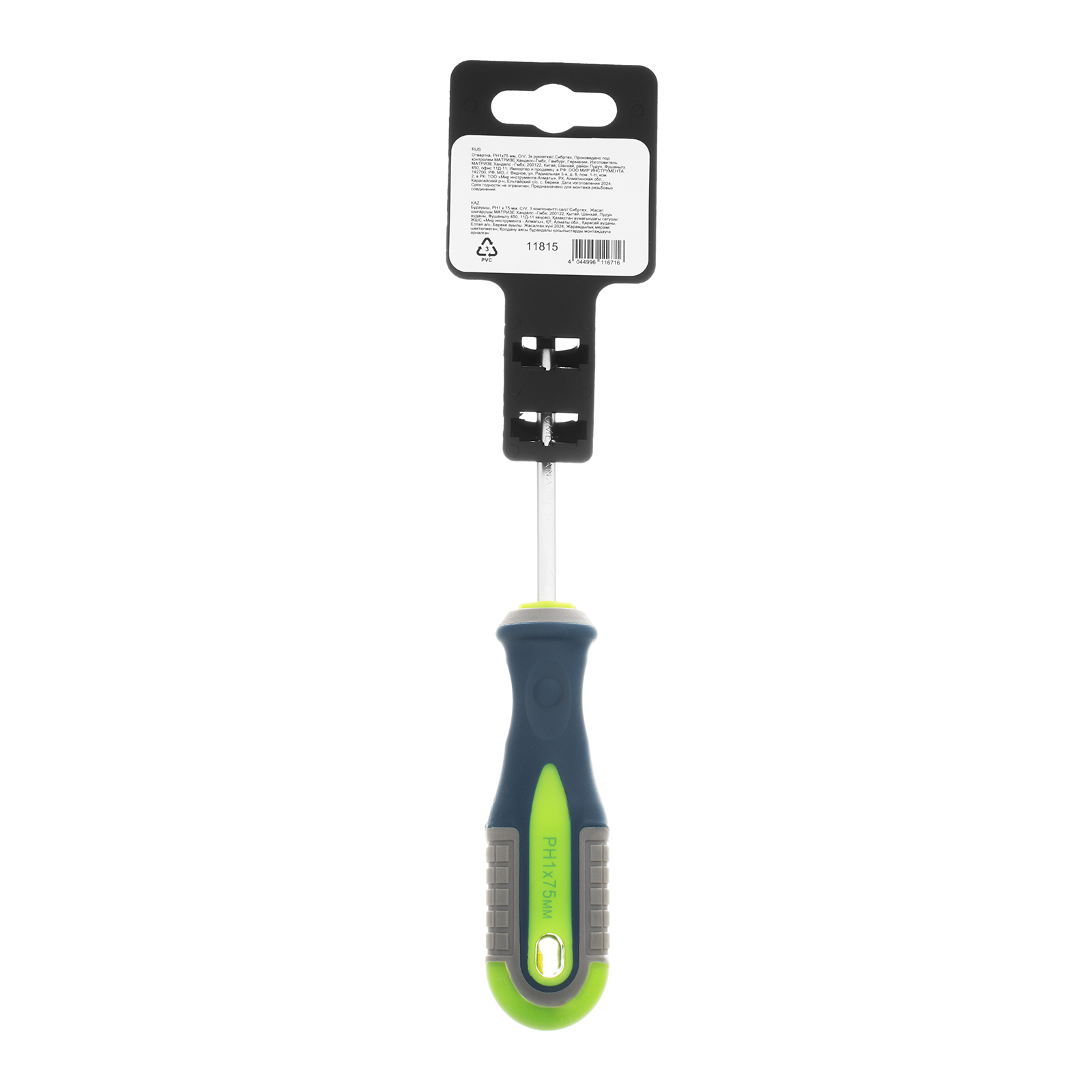 Отвертка Сибртех 11815, PH1 х 75 мм, из стали CrV, с 3-х компонентной рукояткой, пригодится частным мастерам для монтажа/демонтажа крепежных элементов типоразмера PH1. Она поможет произвести ремонтные и монтажные работы дома, в гараже, на даче. Благодаря стержню длиной 75 мм отверткой можно работать в углублениях.