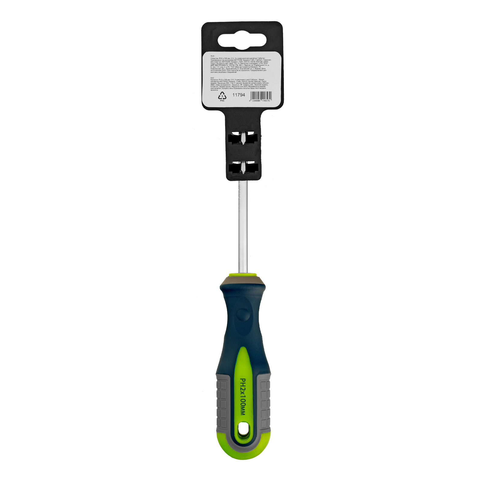 Отвертка Сибртех 11794, PH2 х 100 мм, из стали CrV, с 3-х компонентной рукояткой, пригодится частным мастерам для монтажа/демонтажа крепежных элементов типоразмера PH2. Она поможет произвести ремонтные и монтажные работы дома, в гараже, на даче. Благодаря стержню длиной 100 мм отверткой можно работать в углублениях.