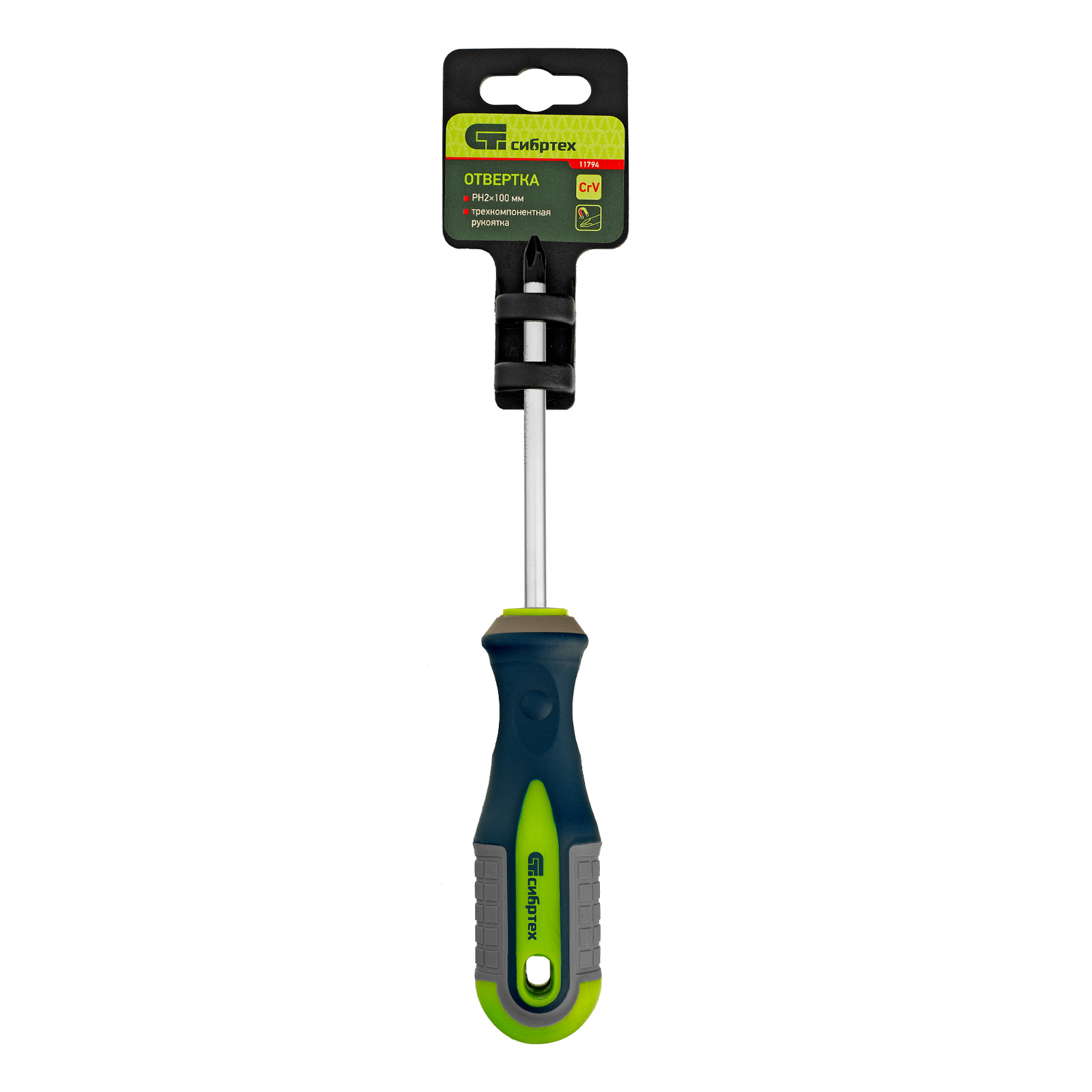 Отвертка, PH2 х 100 мм, CrV, трехкомпонентная рукоятка Сибртех в Екатеринбурге