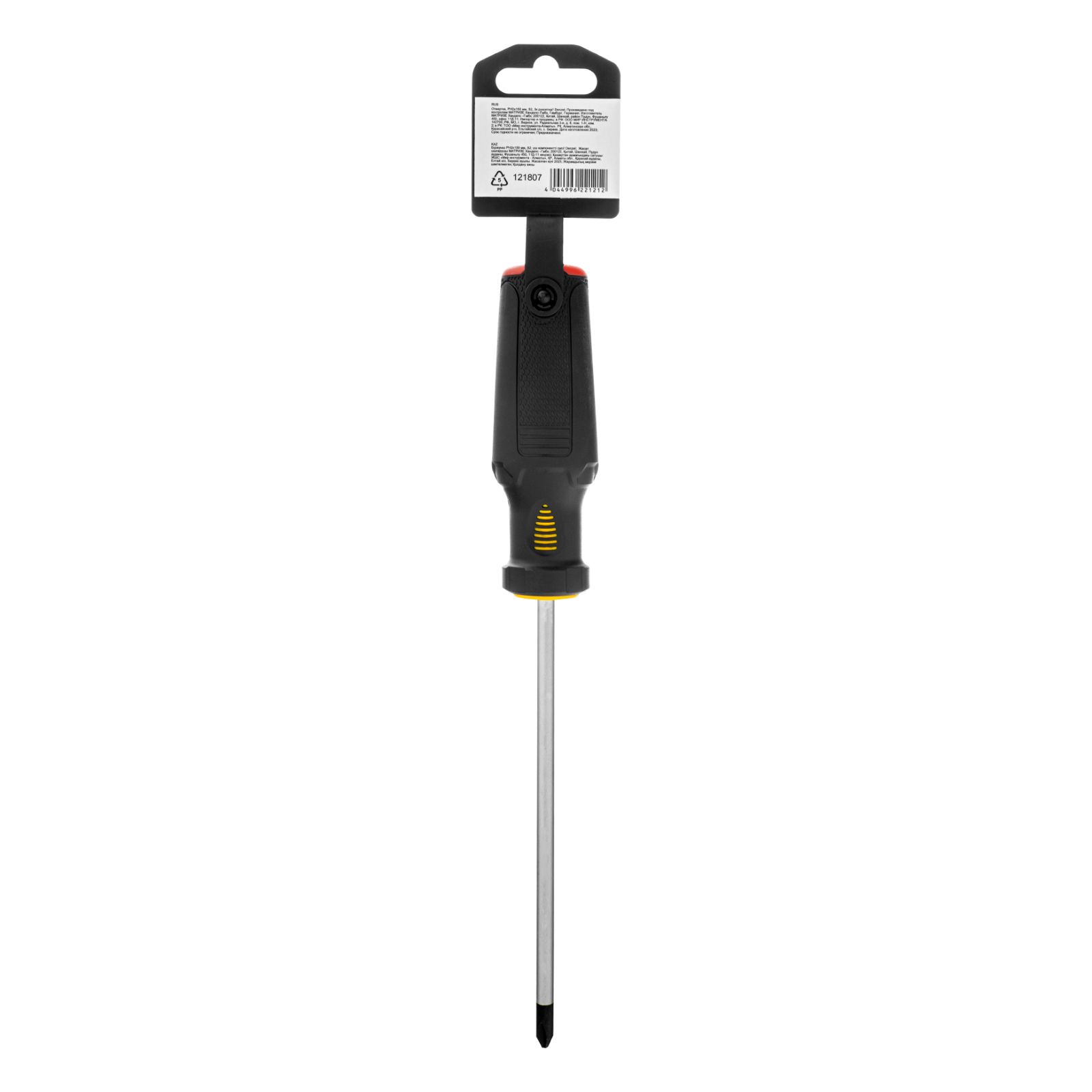 Отвертка Denzel 121807 с трехкомпонентной рукояткой, со стержнем из стали S2, длиной 150 мм, предназначена для закручивания и откручивания резьбового крепежа типа PH2. Высокоточный намагниченный шлиц избавляет мастера от необходимости придерживать винт или саморез рукой. Отвертка рекомендована для профессионального использования.