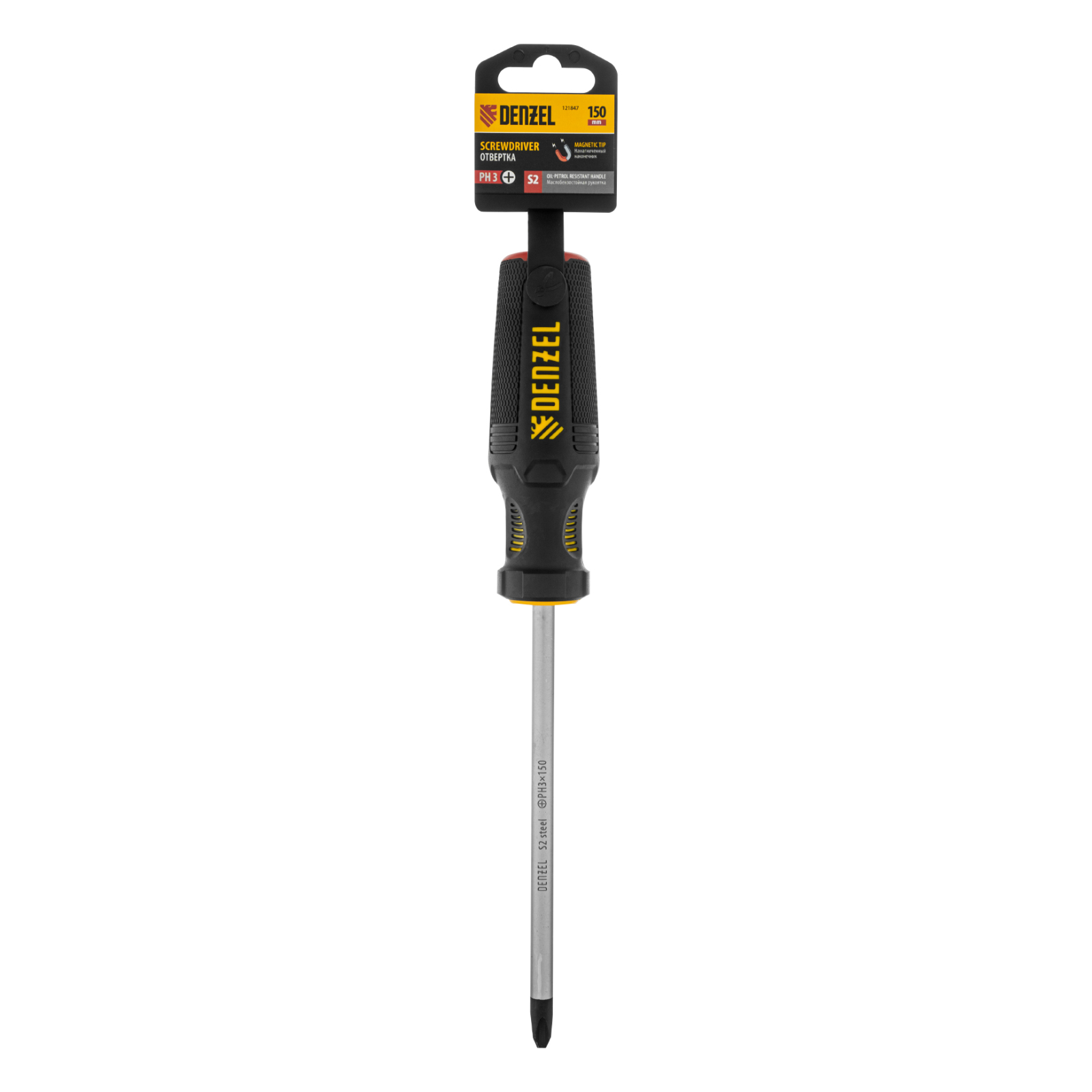 Отвертка Denzel 121847 с трехкомпонентной рукояткой, со стержнем из стали S2, длиной 150 мм, предназначена для закручивания и откручивания резьбового крепежа типа PH3. Высокоточный намагниченный шлиц избавляет мастера от необходимости придерживать винт или саморез рукой. Отвертка рекомендована для профессионального использования.