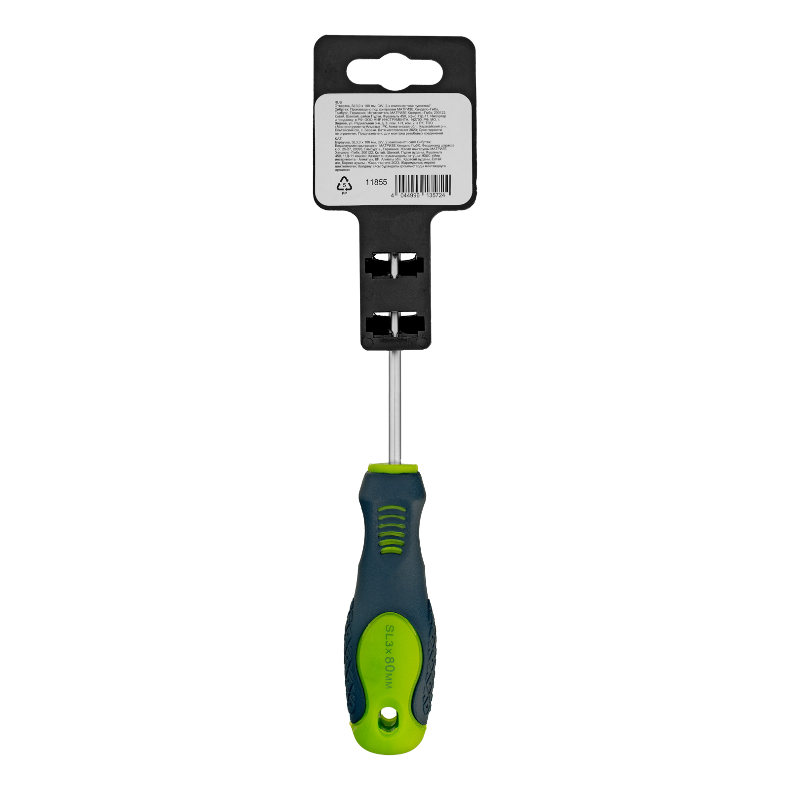 Отвертка Сибртех 11855, SL3,0 х 80 мм, из стали CrV, с 2-х компонентной рукояткой, подходит для работ, не требующих большого усилия затяжки. С ее помощью осуществляется монтаж/демонтаж крепежных элементов типа Slotted. Отвертка оснащена стержнем длиной 80 мм для работ в углублениях и на поверхностях. Инструмент пригодится для полупрофессионального применения.