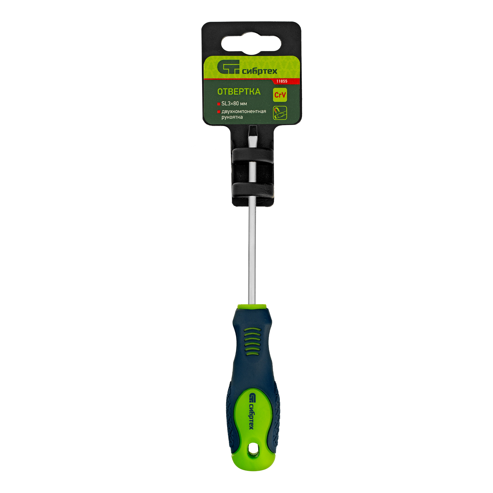Отвертка, SL3 х 80 мм, CrV, двухкомпонентная рукоятка Сибртех в Екатеринбурге