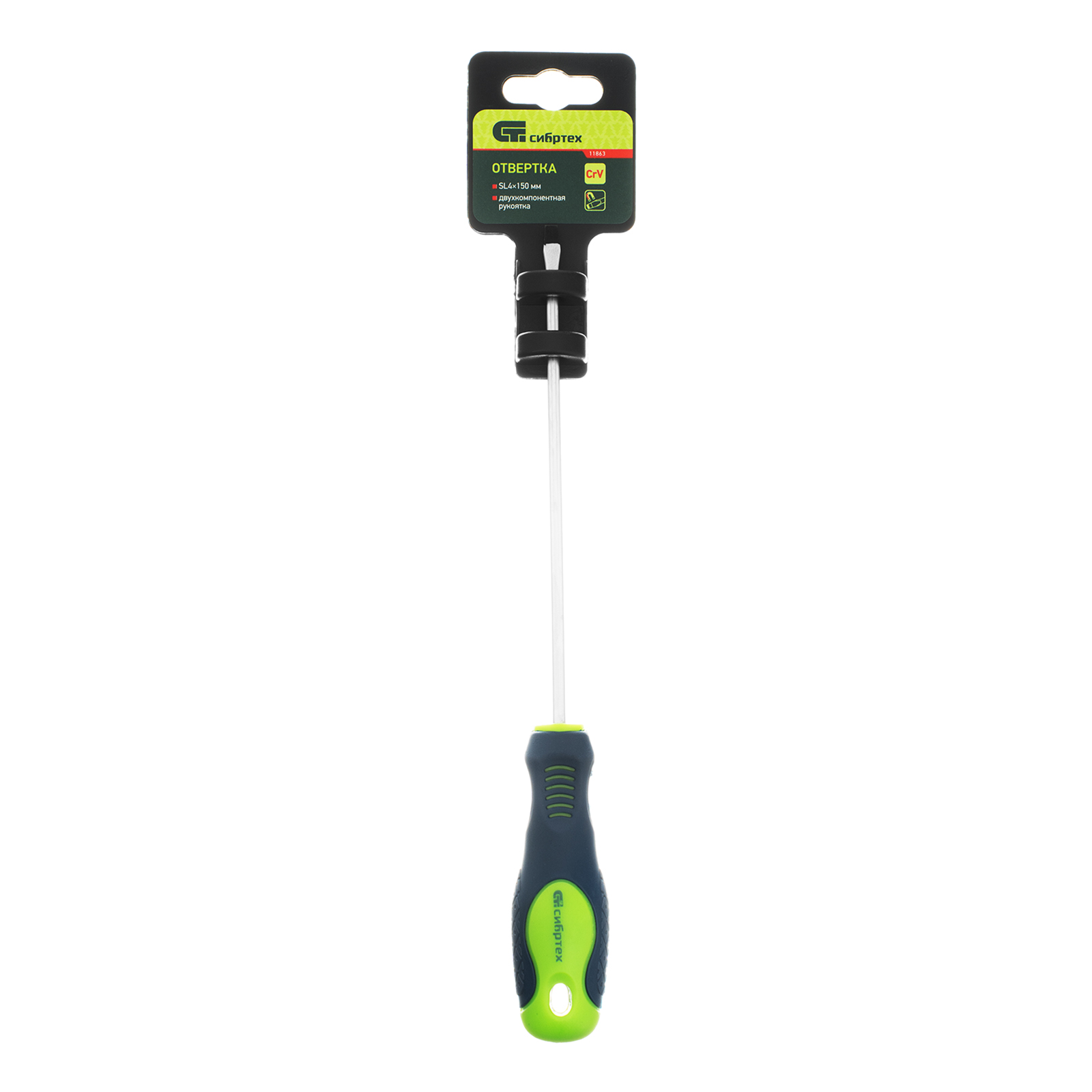 Отвертка, SL4 х 150 мм, CrV, двухкомпонентная рукоятка Сибртех в Екатеринбурге