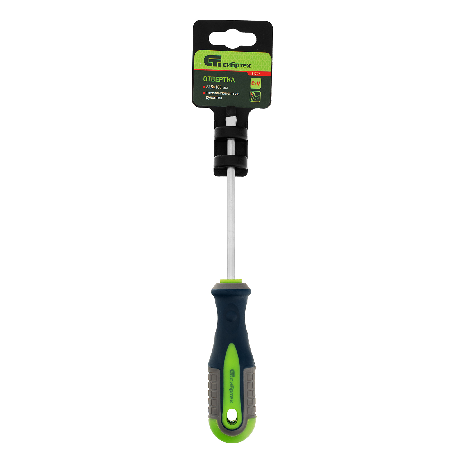 Отвертка, SL5 х 100 мм, CrV, трехкомпонентная рукоятка Сибртех в Екатеринбурге