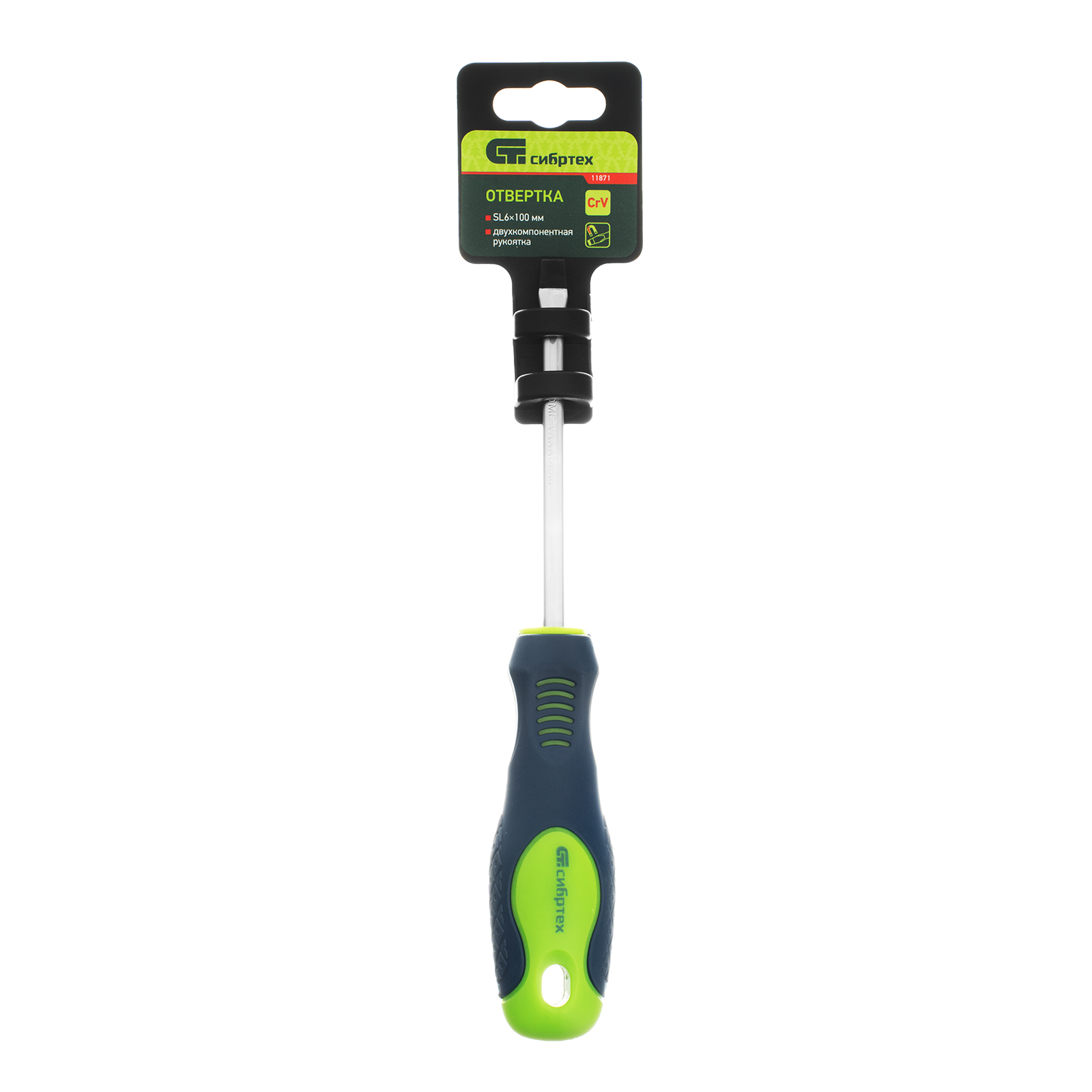 Отвертка, SL6 х 100 мм, CrV, двухкомпонентная рукоятка Сибртех в Екатеринбурге