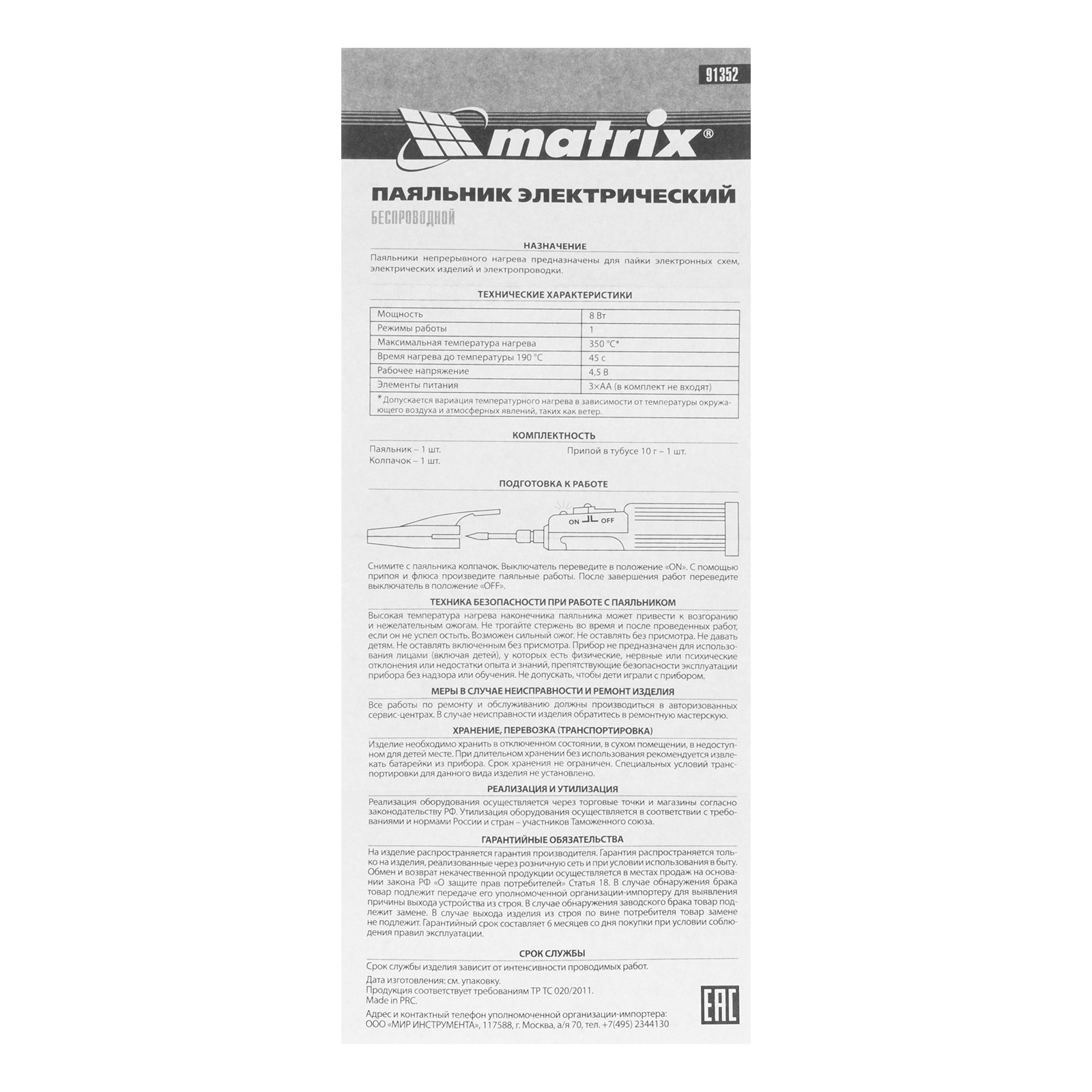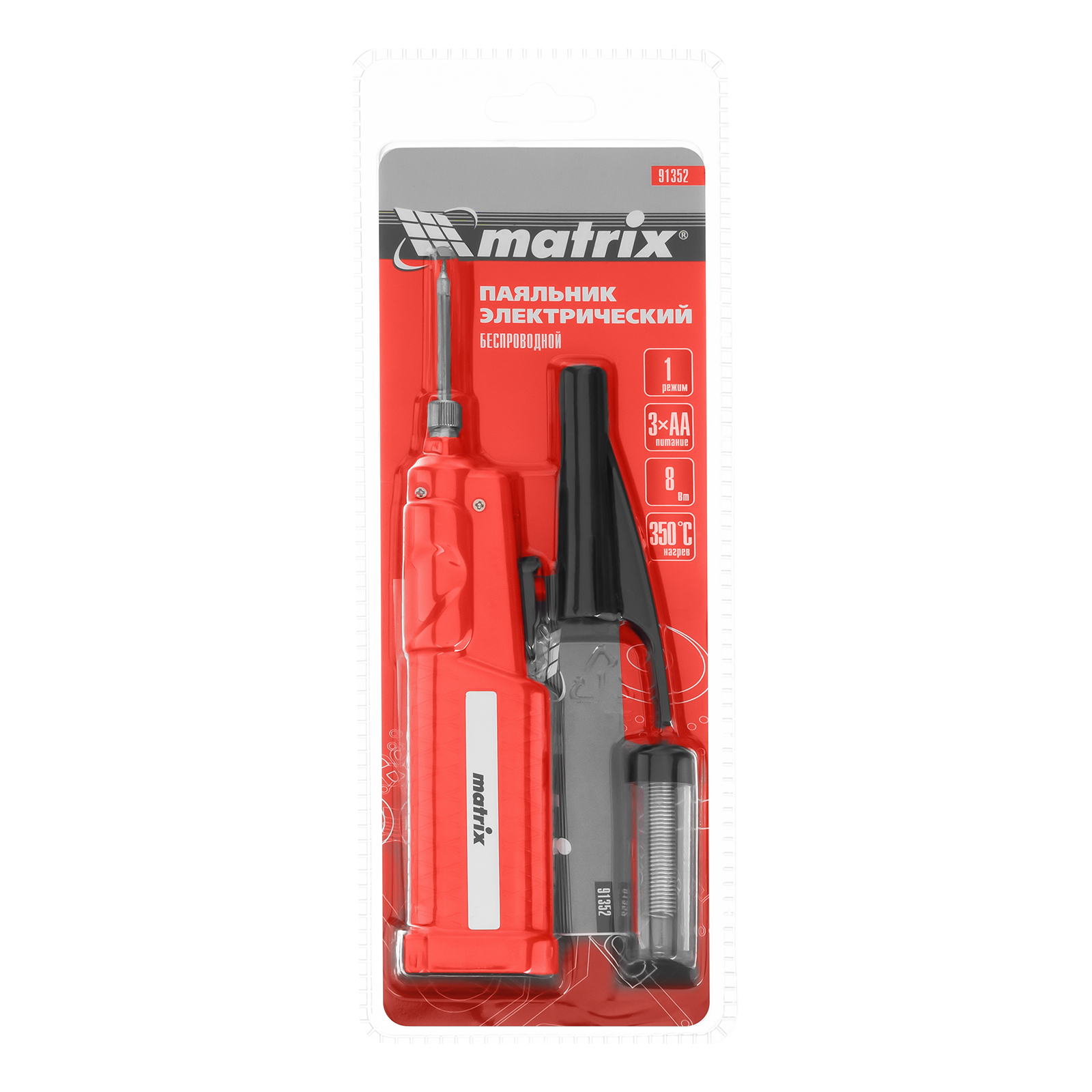 Паяльник беспроводной 4.5 В, 8 Вт, 350°С, припой 10 г, работа от элементов питания 3хАА Matrix в Екатеринбурге