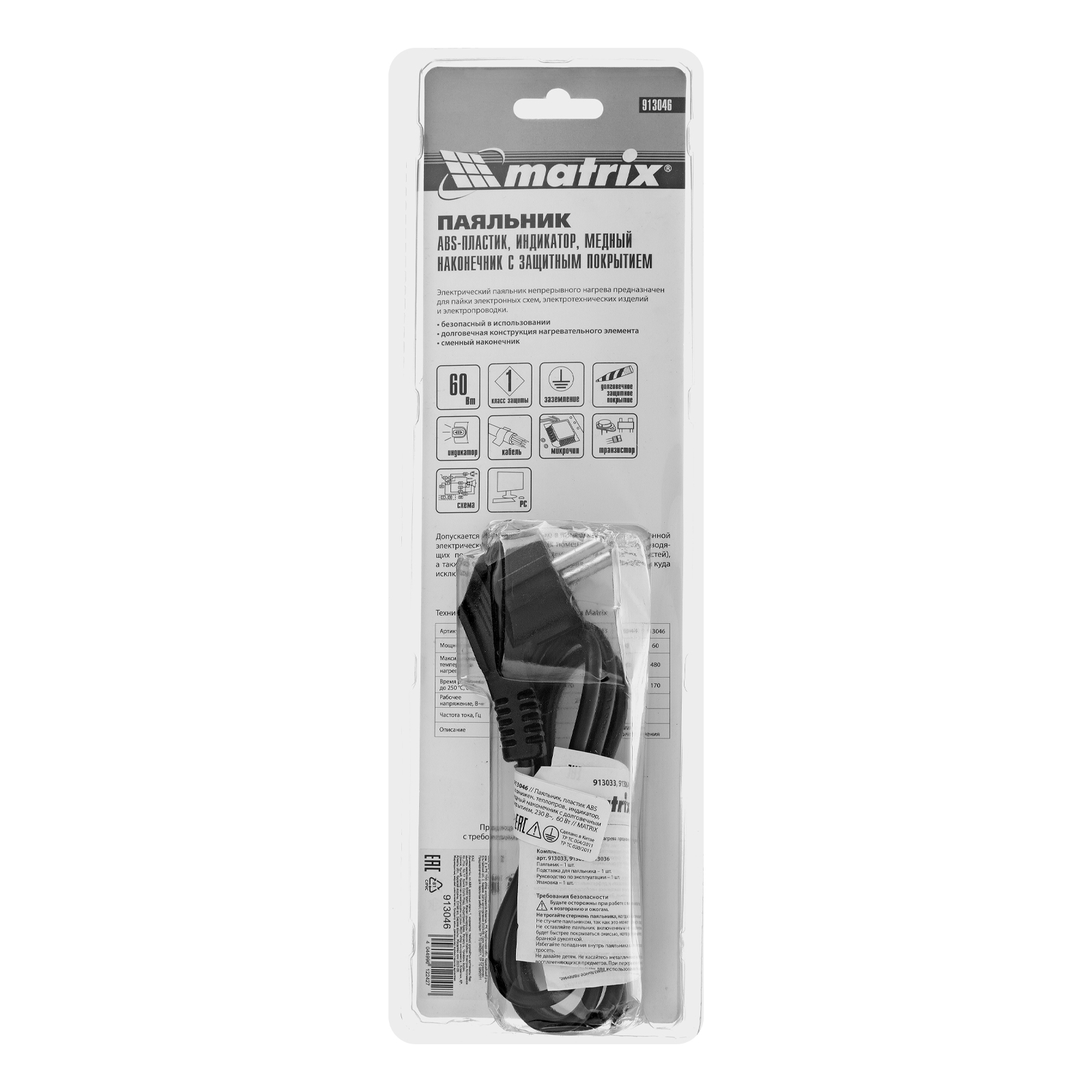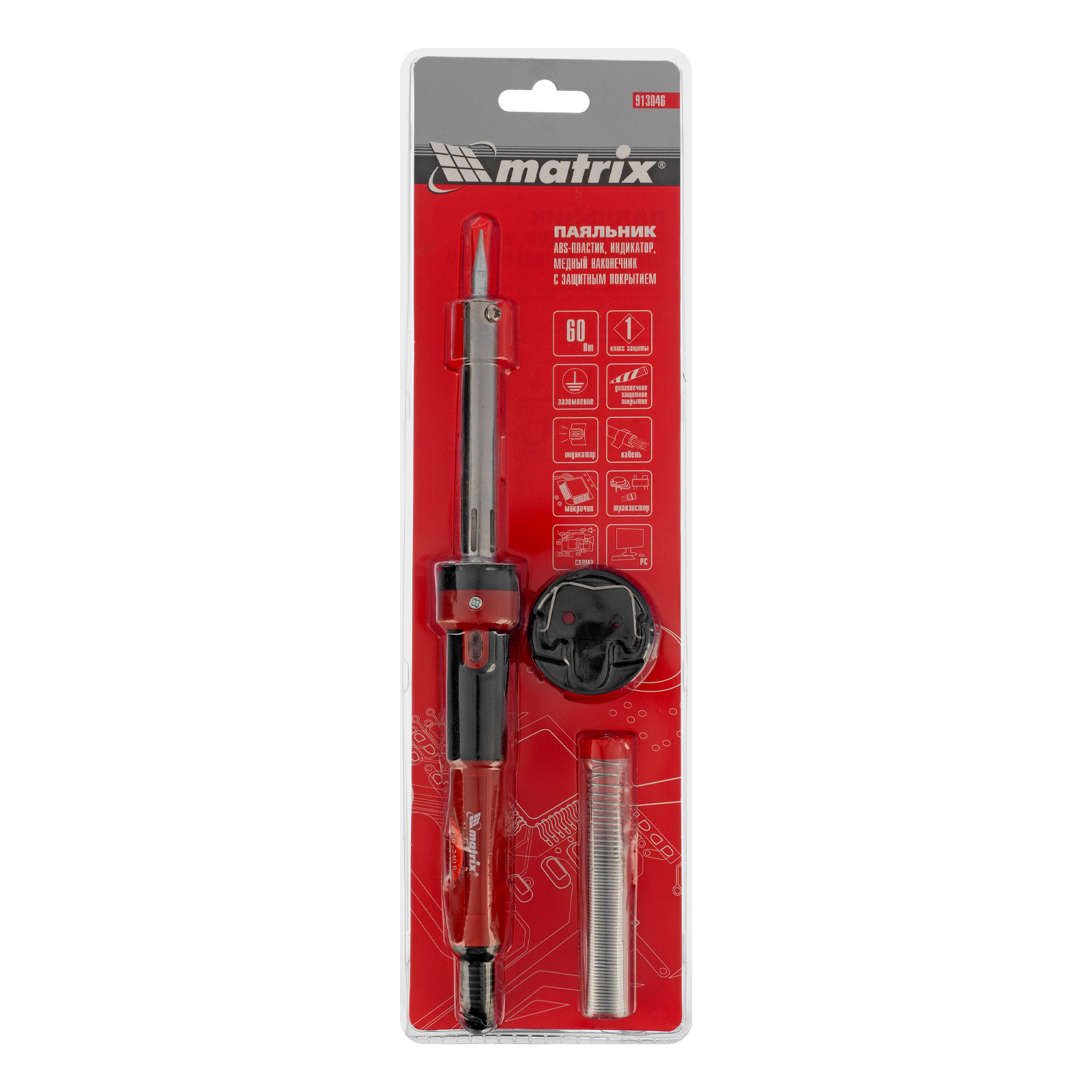 Паяльник, пластик ABS, класс защиты 1, индикатор, медный наконечник с долговечным покрытием, 220 В, 60 W Matrix в Екатеринбурге