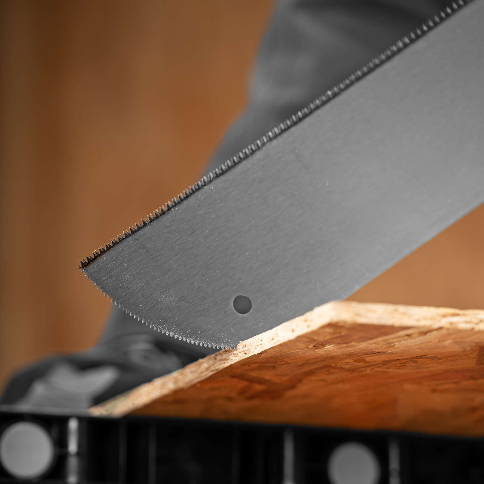 Пила для фанеры с запилом Matrix 23149 с полотном длиной 330 мм и двухкомпонентной рукояткой, позволяет производить распил древесины, фанеры, ДСП в продольном и поперечном направлении. Ей можно пилить как от себя, так и на себя. Благодаря лазерной заточке зубьев распиловка происходит легко, без нажима на поверхность заготовки. Запил в передней части полотна упрощает работу. Мелкие зубья с шагом 2 мм обеспечивают ровный и гладкий рез. Пила будет полезна в столярной мастерской, пригодится также и в домашнем хозяйстве.