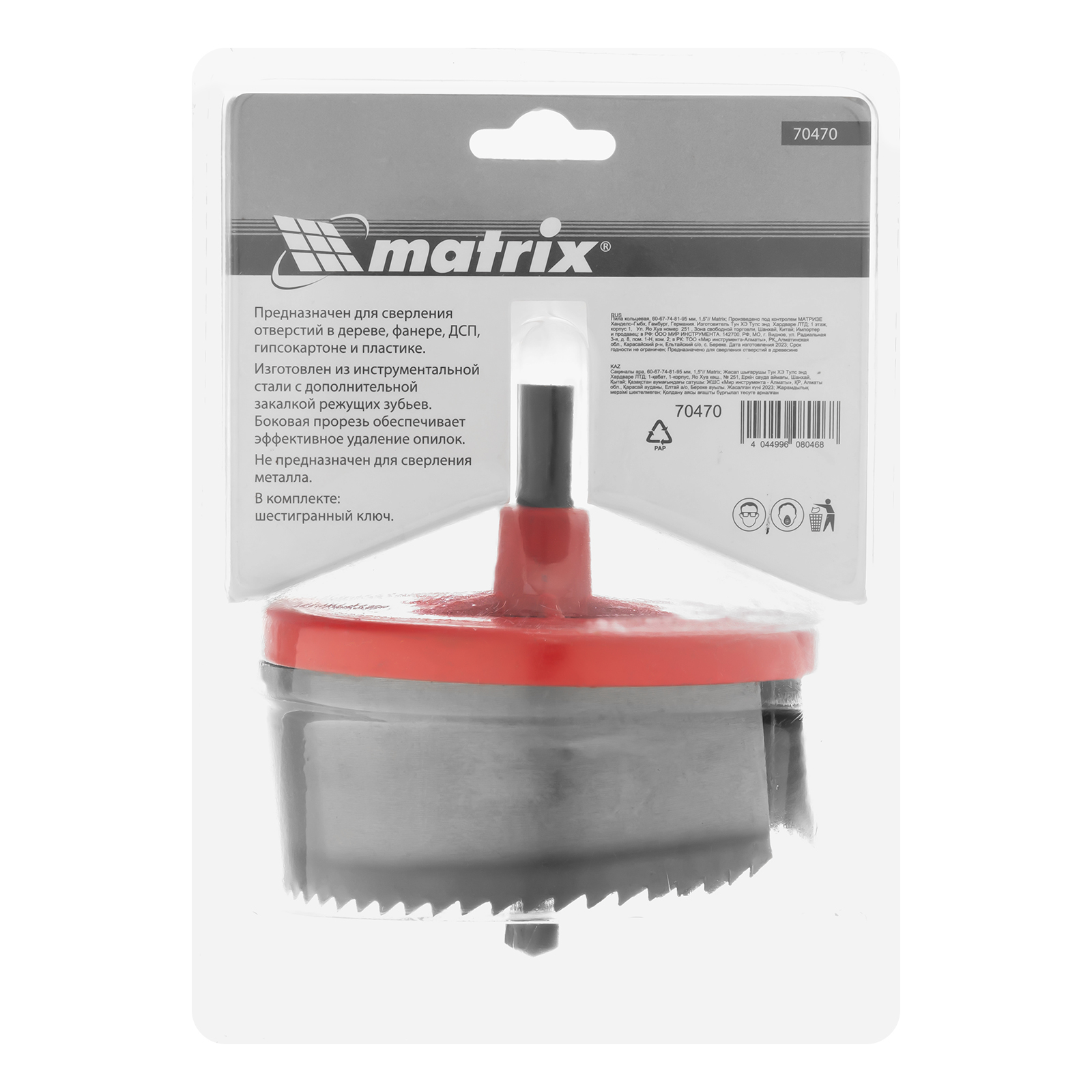 Кольцевая пила Matrix 70470 состоит из держателя и коронок диаметром 60-67-74-81-95 мм, позволяющих вырезать круглые отверстия глубиной до 1,5" в древесине, ДВП и ДСП. Устанавливается на ручную или электрическую дрель, не требует специальных навыков использования. Пила необходима для проведения работ по выводу труб через перегородки, установке осветительных систем, розеток и выключателей.
