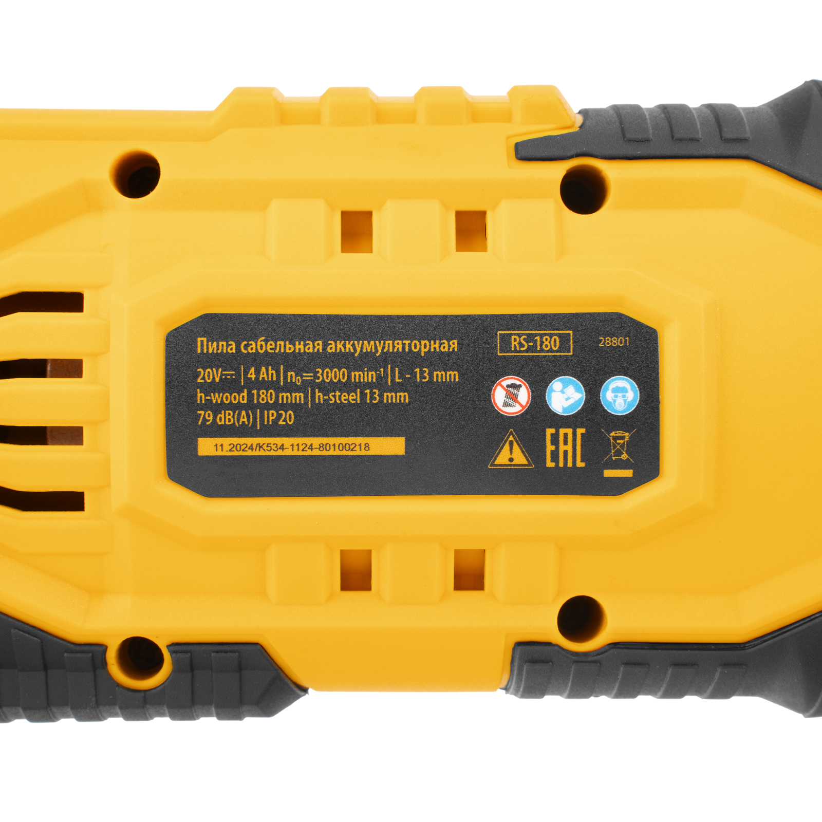 Пила сабельная аккумуляторная RS-180, Li-Ion, 20 В Denzel в Екатеринбурге