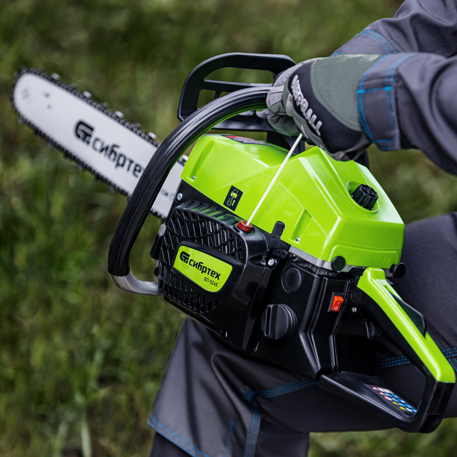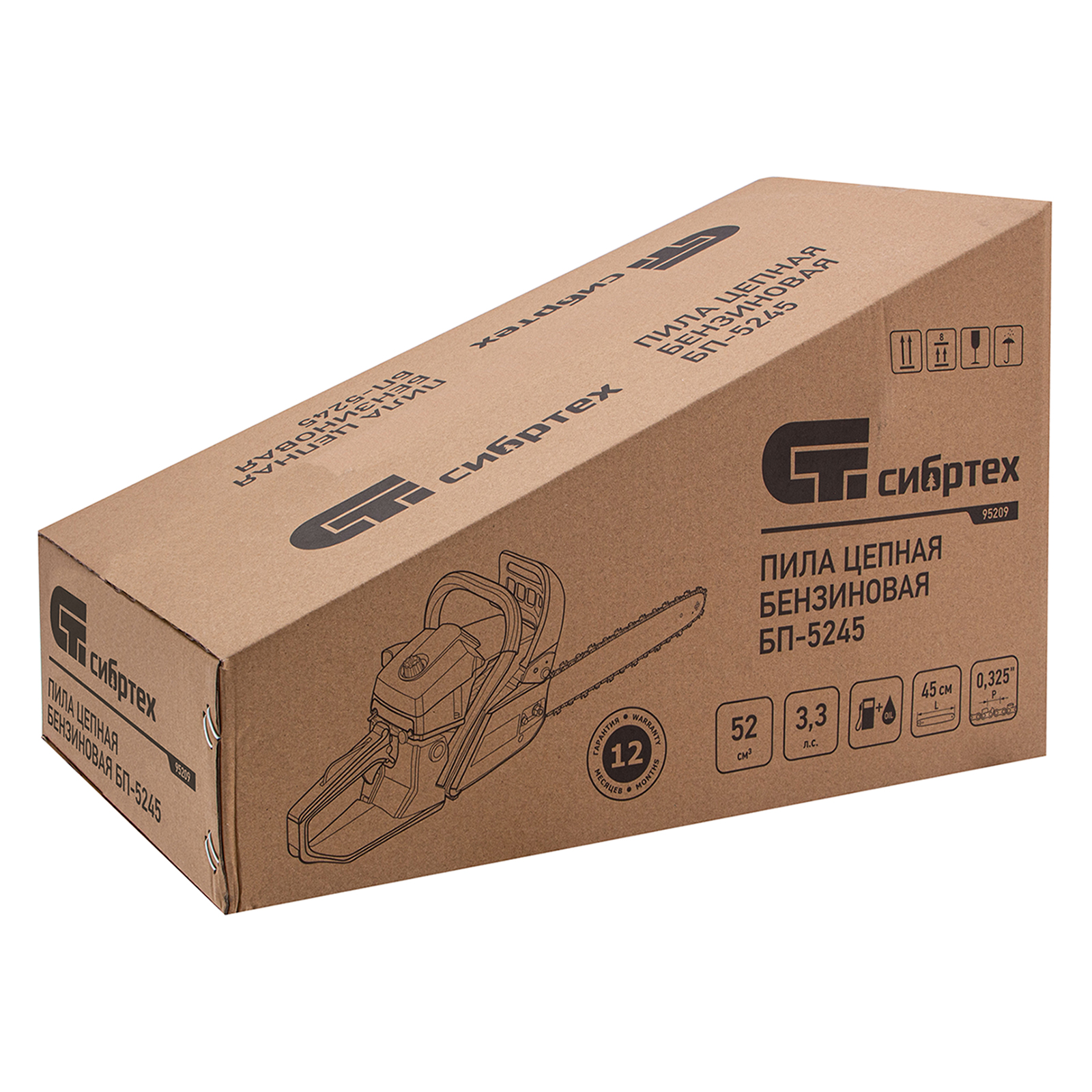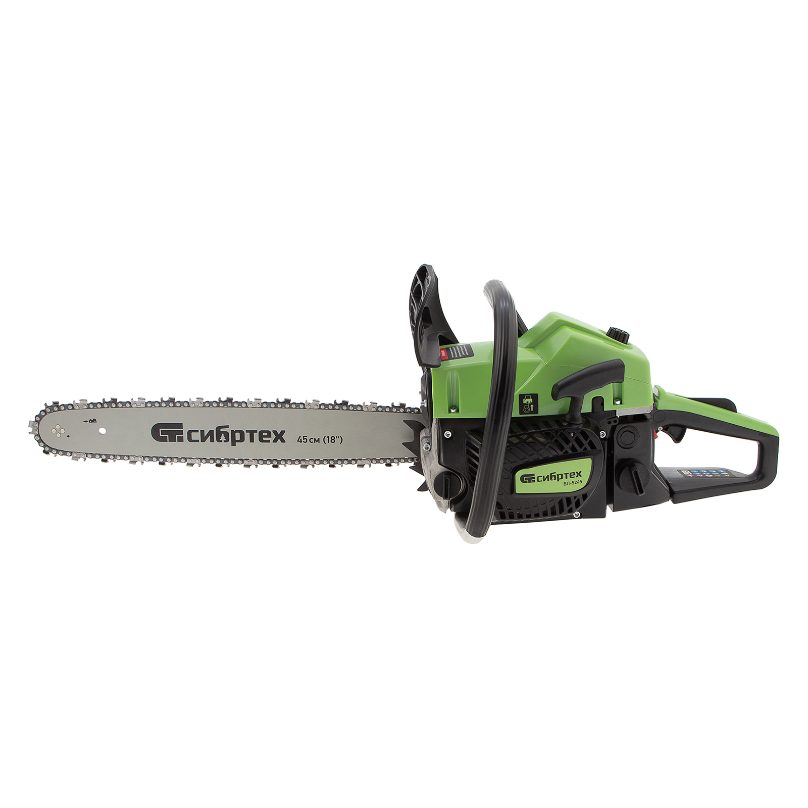 Пила цепная бензиновая Сибртех БП-5245 95209 с двухтактным двигателем объемом 52 см3 и мощностью 3,3 л.с предназначена для распиловки древесины различных пород, заготовки дров, спиливания веток и крупных сучков. Пригодится во время ремонта, строительства, благоустройства садового участка и при выполнении бытовых задач. Мощный и экономичный двигатель в сочетании с качественной шиной длиной 45 см (цепь с 72 звеньями с шагом 0,325 дюйма и шириной паза 1,5 мм) позволяют достичь наилучших результатов да.