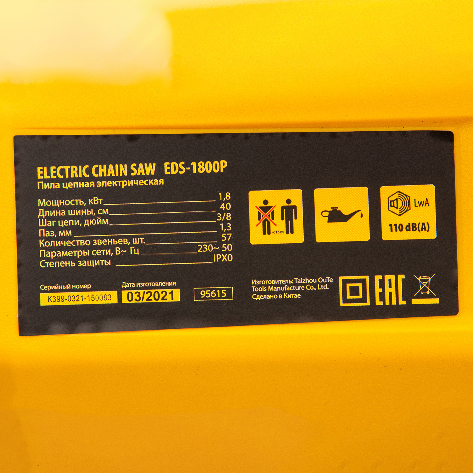 Пила цепная электрическая EDS-1800P, 1.8 кВт,поперечная, шина 40 см, шаг 3/8, паз 1.3 мм, 57 звеньев Denzel в Екатеринбурге
