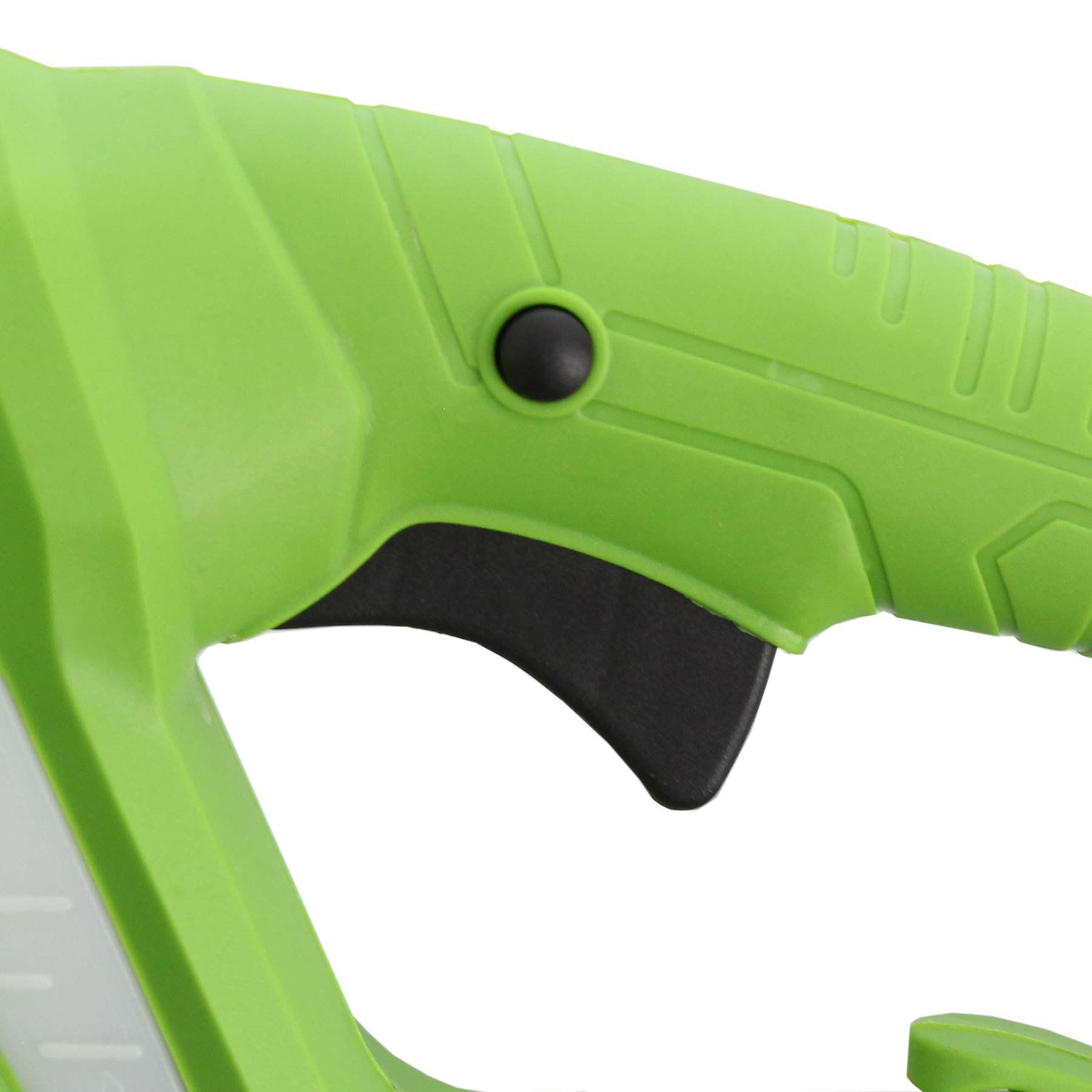 - Защита от случайного пуска — двигатель включается только при одновременном нажатии клавиши блокировки и выключателя.