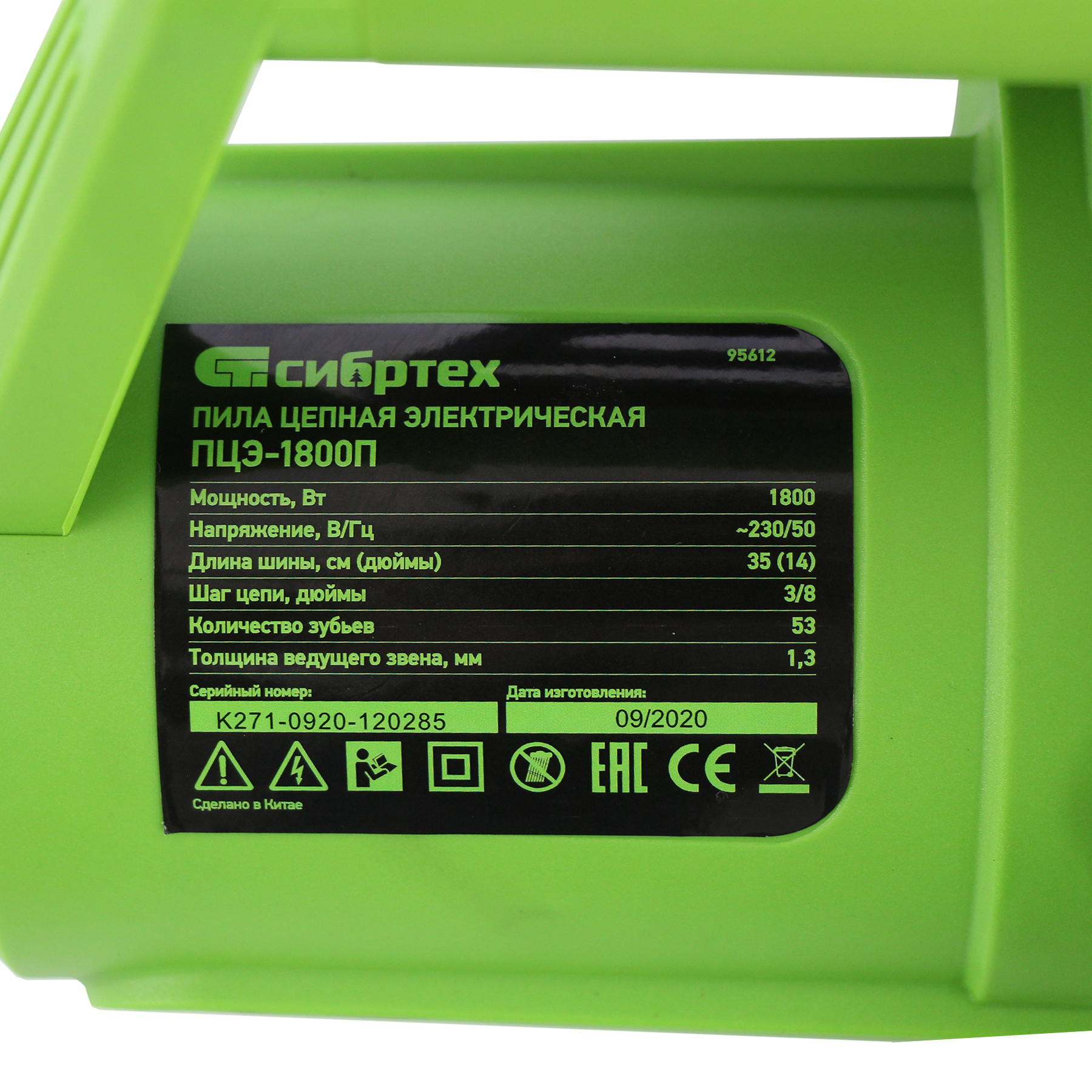 Пила цепная электрическая ПЦЭ-1800П с поперечным двигателем, 1.8 кВт, 14'' (35 см) Сибртех в Екатеринбурге