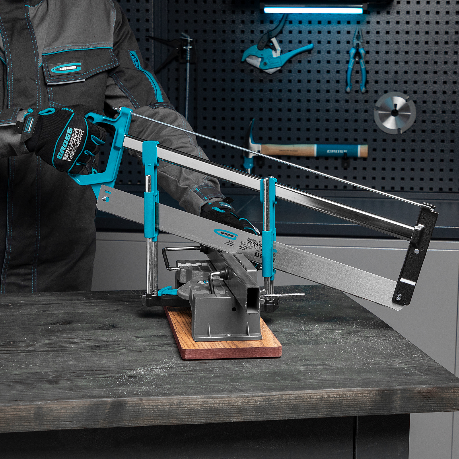 Пильное полотно Gross «PIRANHA» 22863 длиной 550 мм, с каленым зубом с 2D-заточкой, 18 TPI — режущий элемент для прецизионного стусла, применяемый для распила под углом заготовок из дерева, мягкого металла и пластика. Мелкие зубья с шагом 18 TPI позволяют получить точный и чистый рез. Полотно используется для пиления плинтусов, реек, дверных наличников и других деталей.