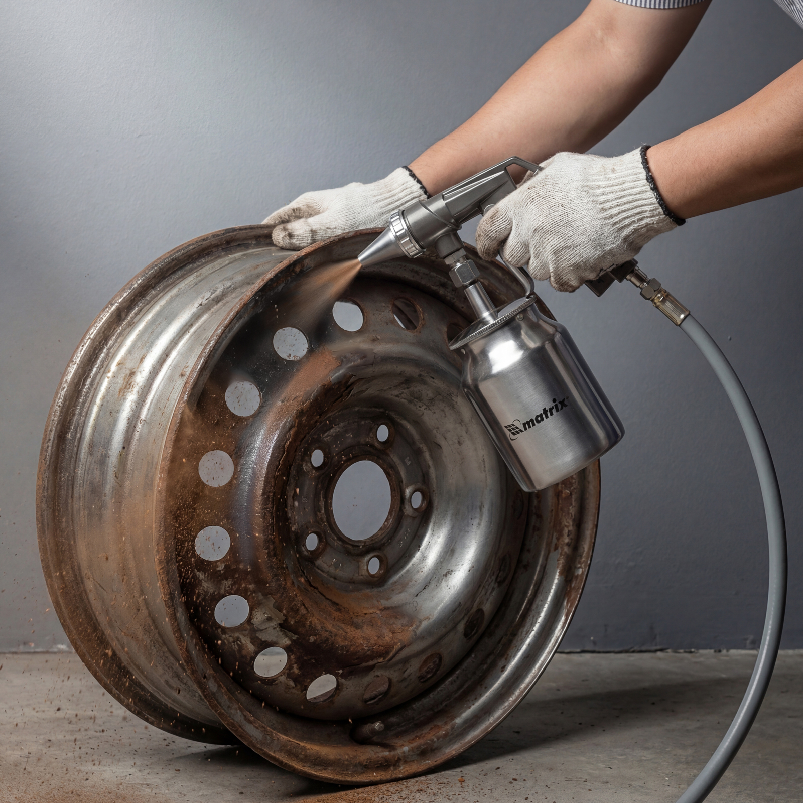 Пескоструйный пистолет Matrix 57326 используется для очищения загрязненных поверхностей, удаления краски, очагов коррозии и ржавчины с помощью кварцевого песка или специального абразива размером до 1,6 мм. Встроенный бачок для песка объемом 1000 мл делает пистолет мобильным и избавляет мастера от необходимости присоединять дополнительный шланг.
