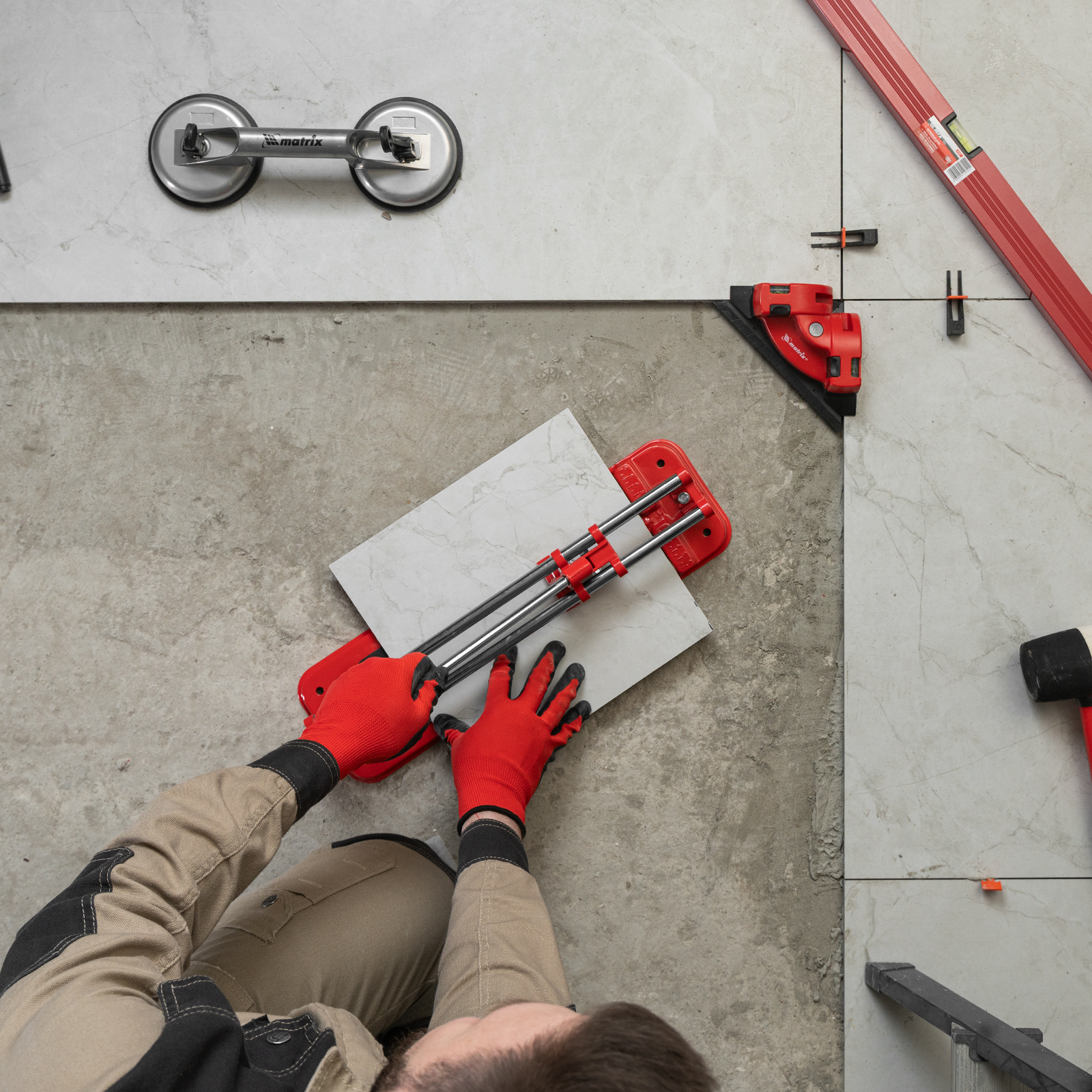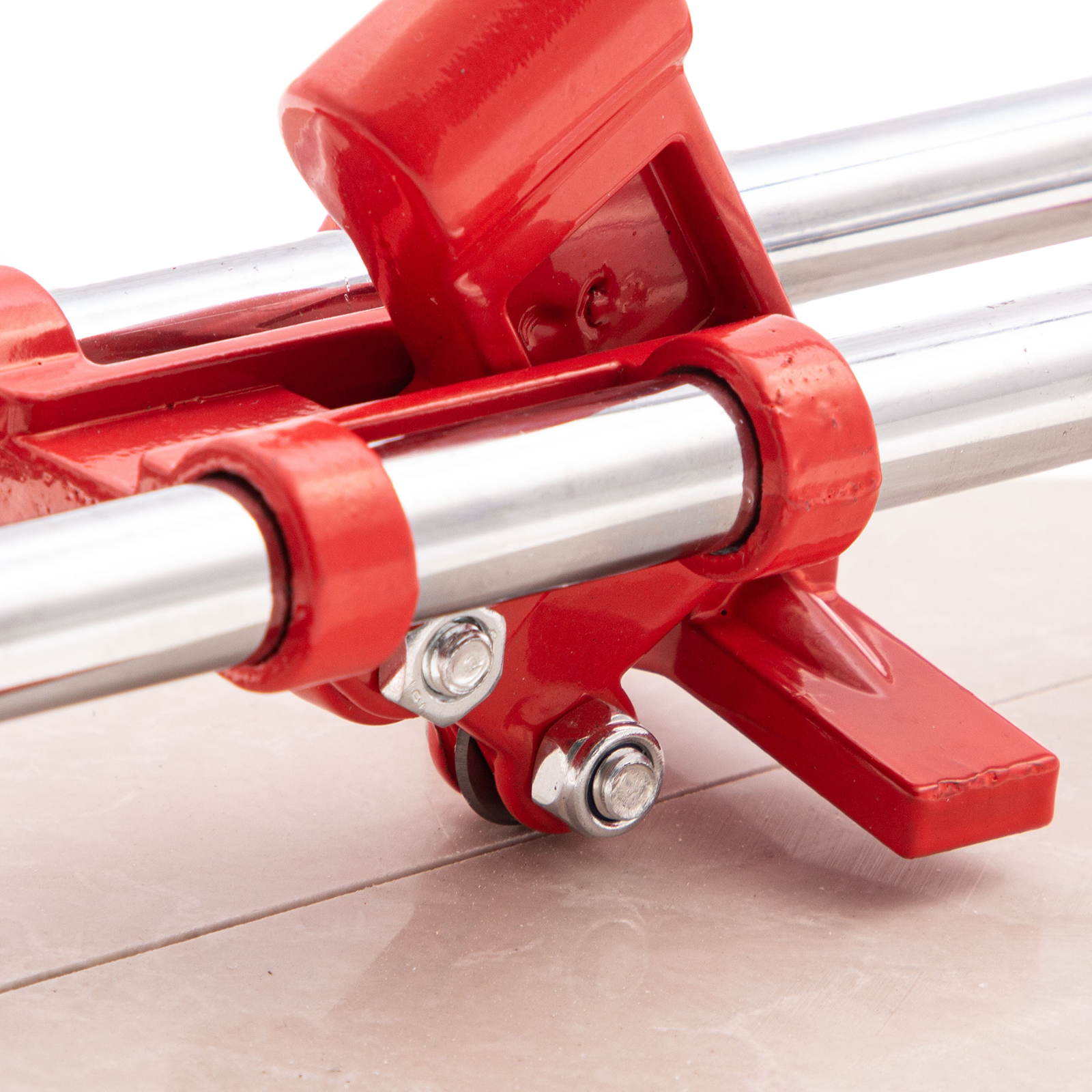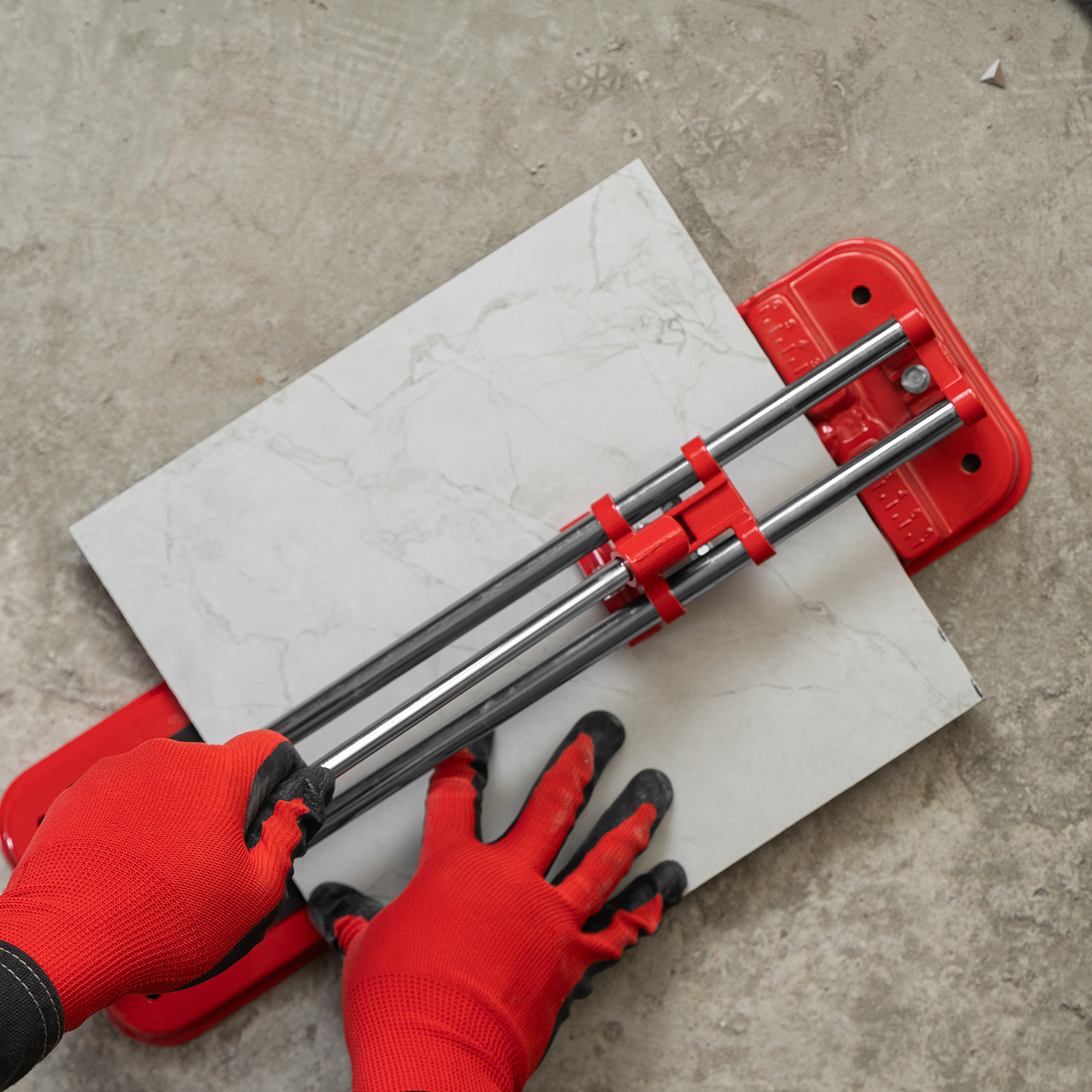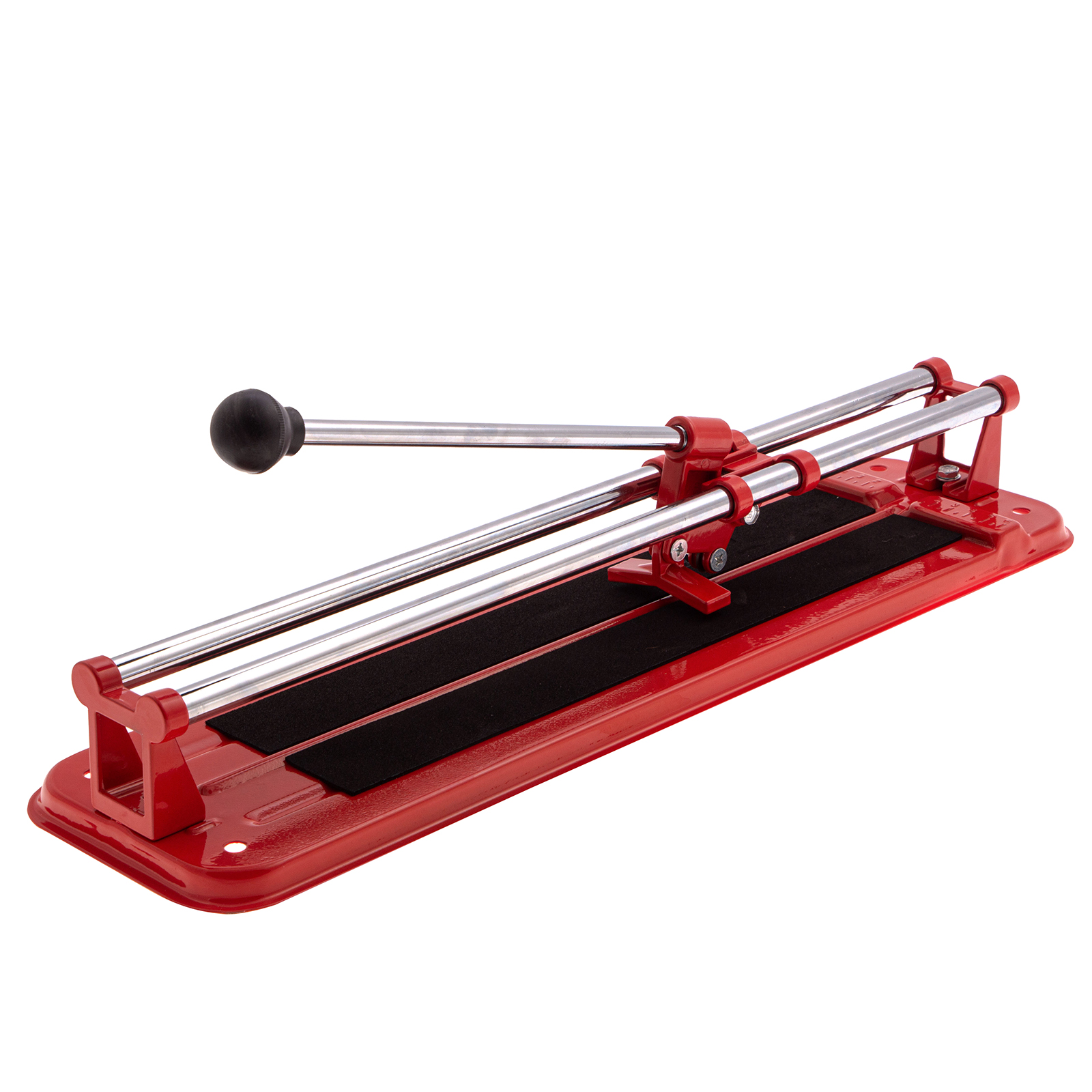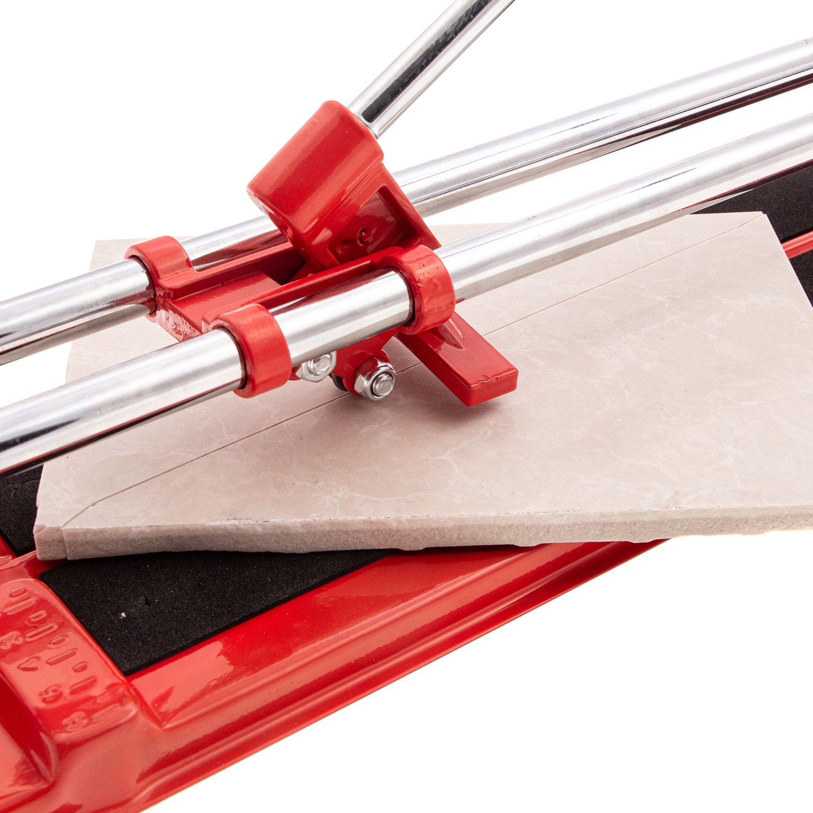- Высокое качество работы — стальное основание обеспечивает устойчивость плиткореза, мягкие амортизирующие накладки предотвращают смещение плитки.