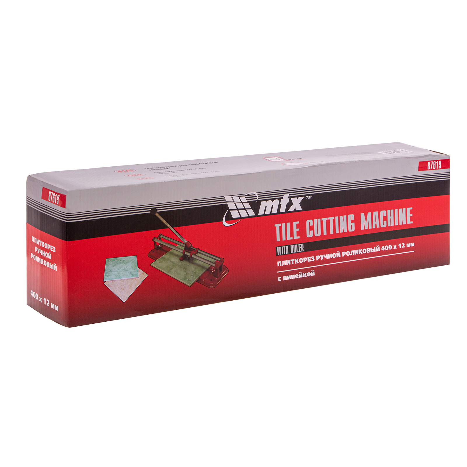 Плиткорез MTX 87619 — инструмент для работы с керамической плиткой размером до 400 х 12 мм. Упрощает и ускоряет резку, позволяет получать ровный и аккуратный срез.