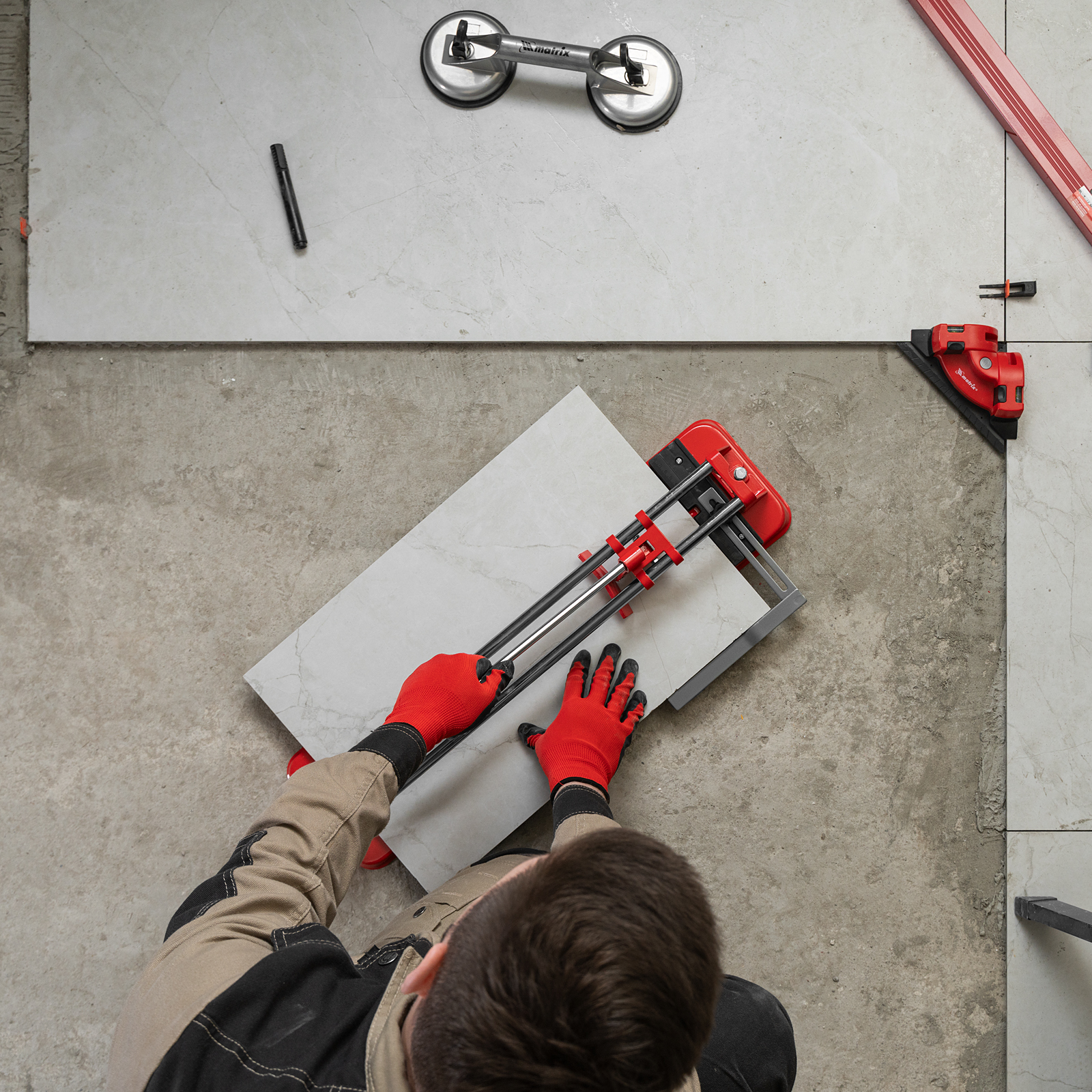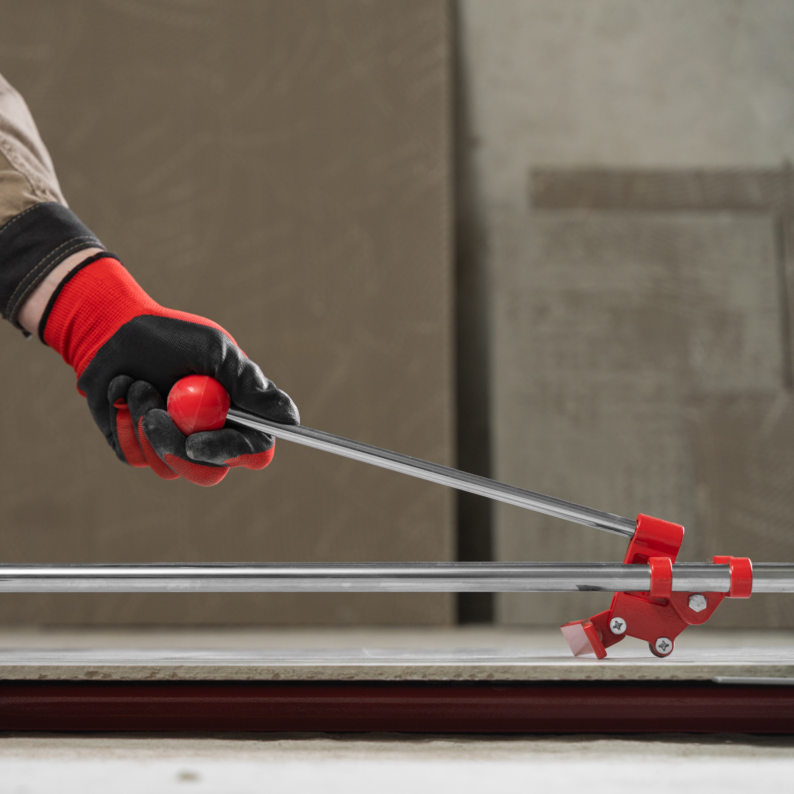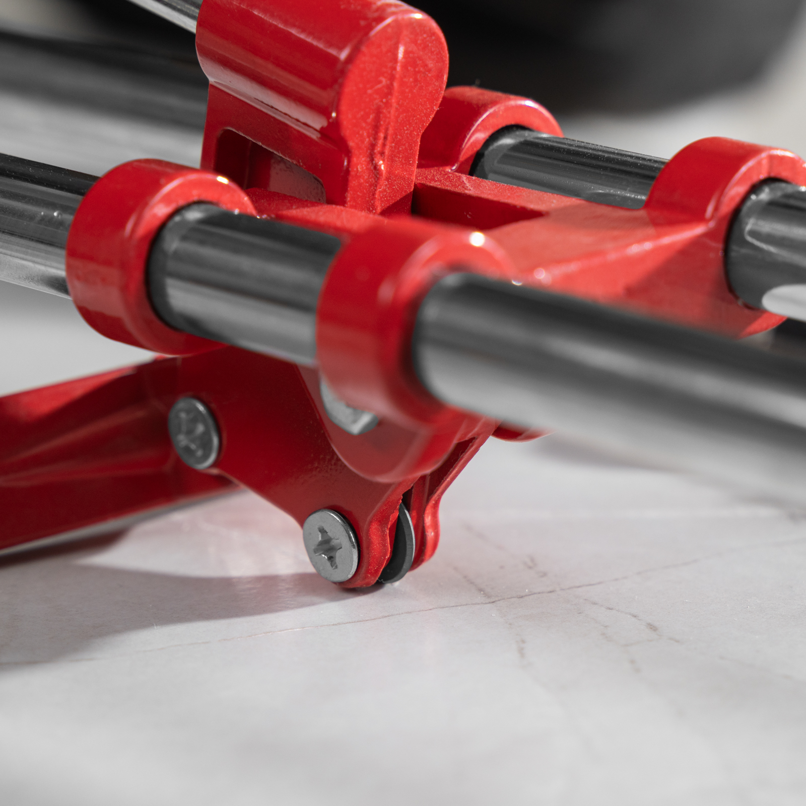 - Высокое качество работы — стальное основание обеспечивает устойчивость плиткореза, мягкие амортизирующие накладки предотвращают смещение плитки.