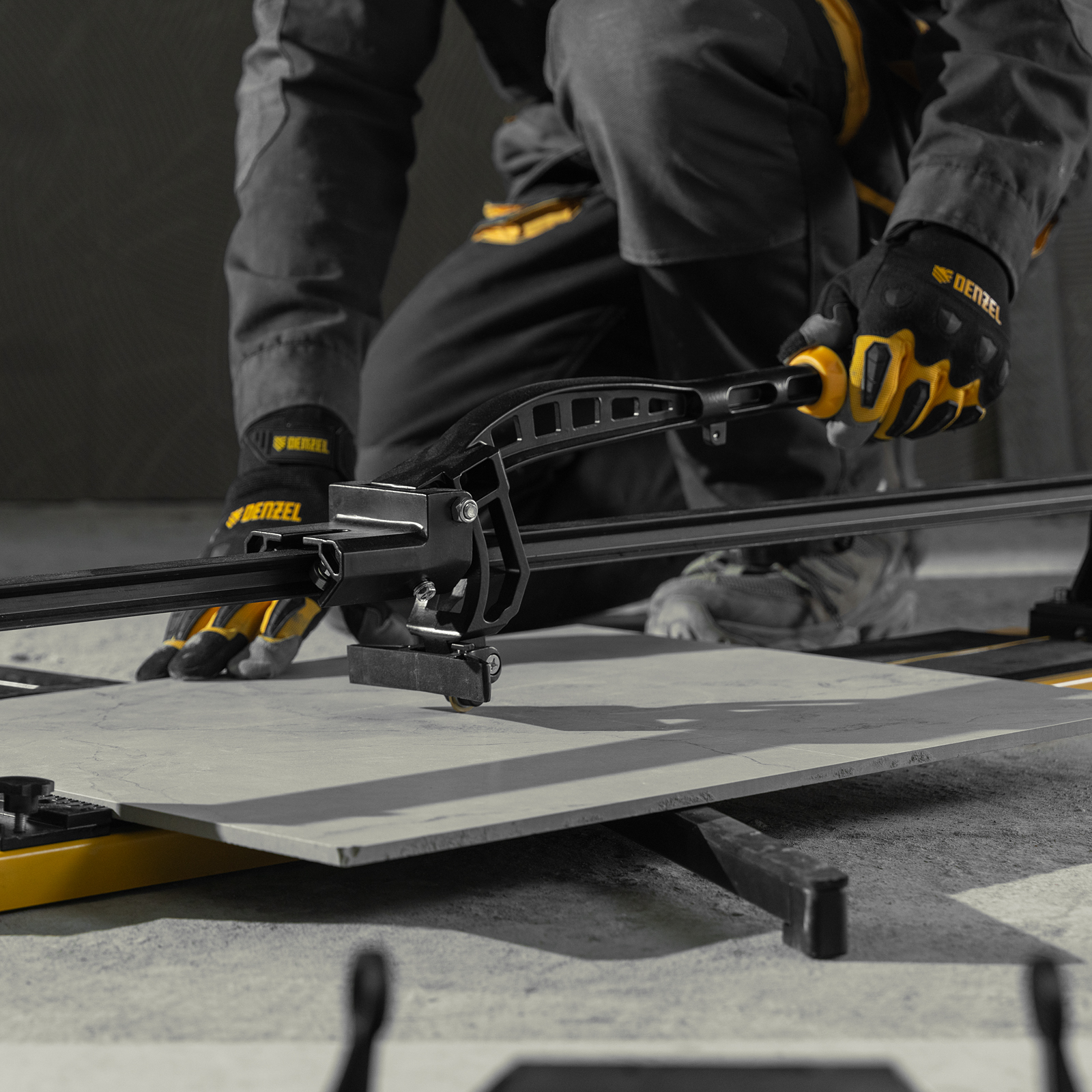 Плиткорез рельсовый 800х16мм, каретка на подш., стальная станина, усил. рукоятка-пенал Denzel в Екатеринбурге