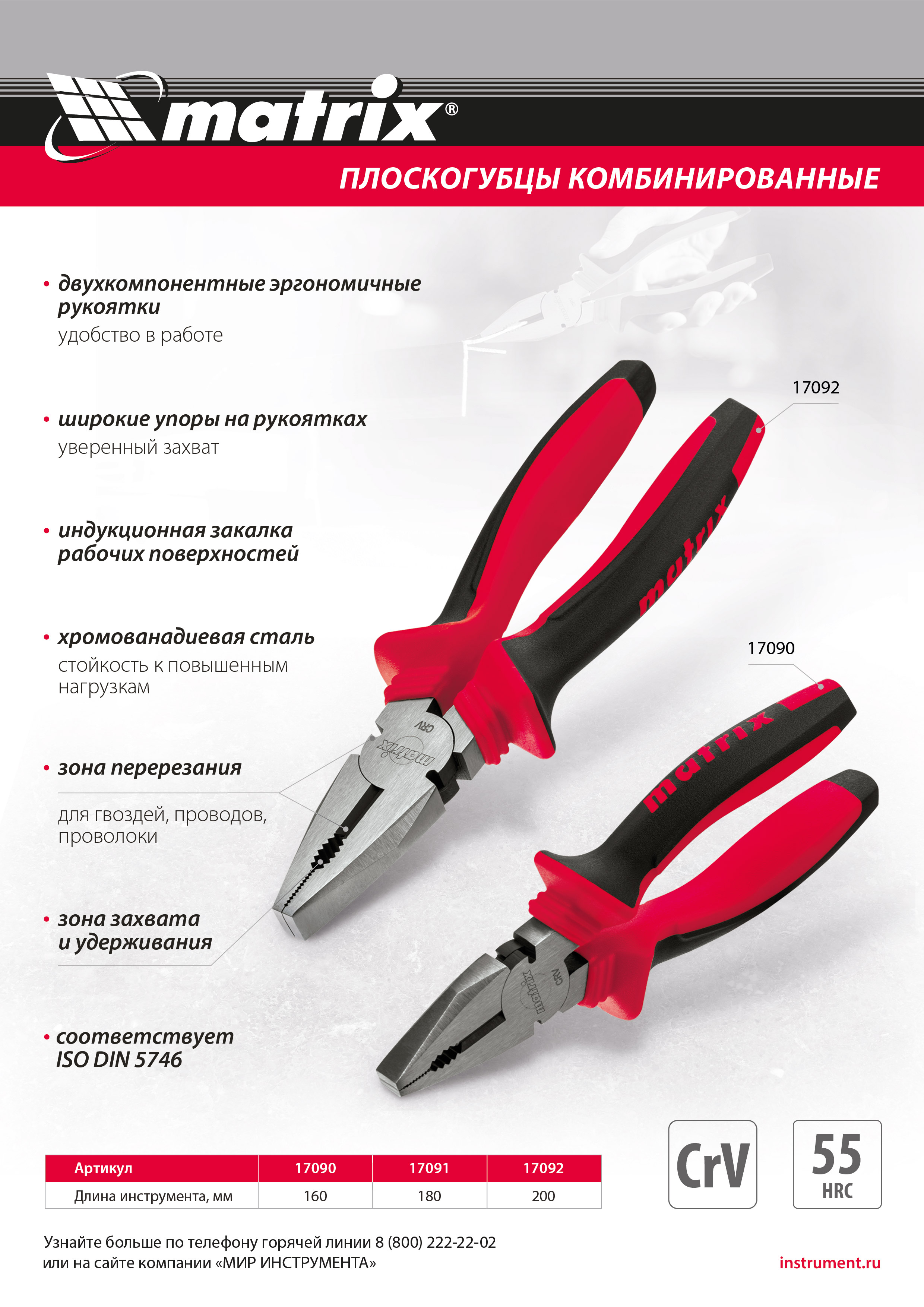 Плоскогубцы комбинированные, 200 мм, хром-ванадий, двухкомпонентные рукоятки Matrix в Екатеринбурге