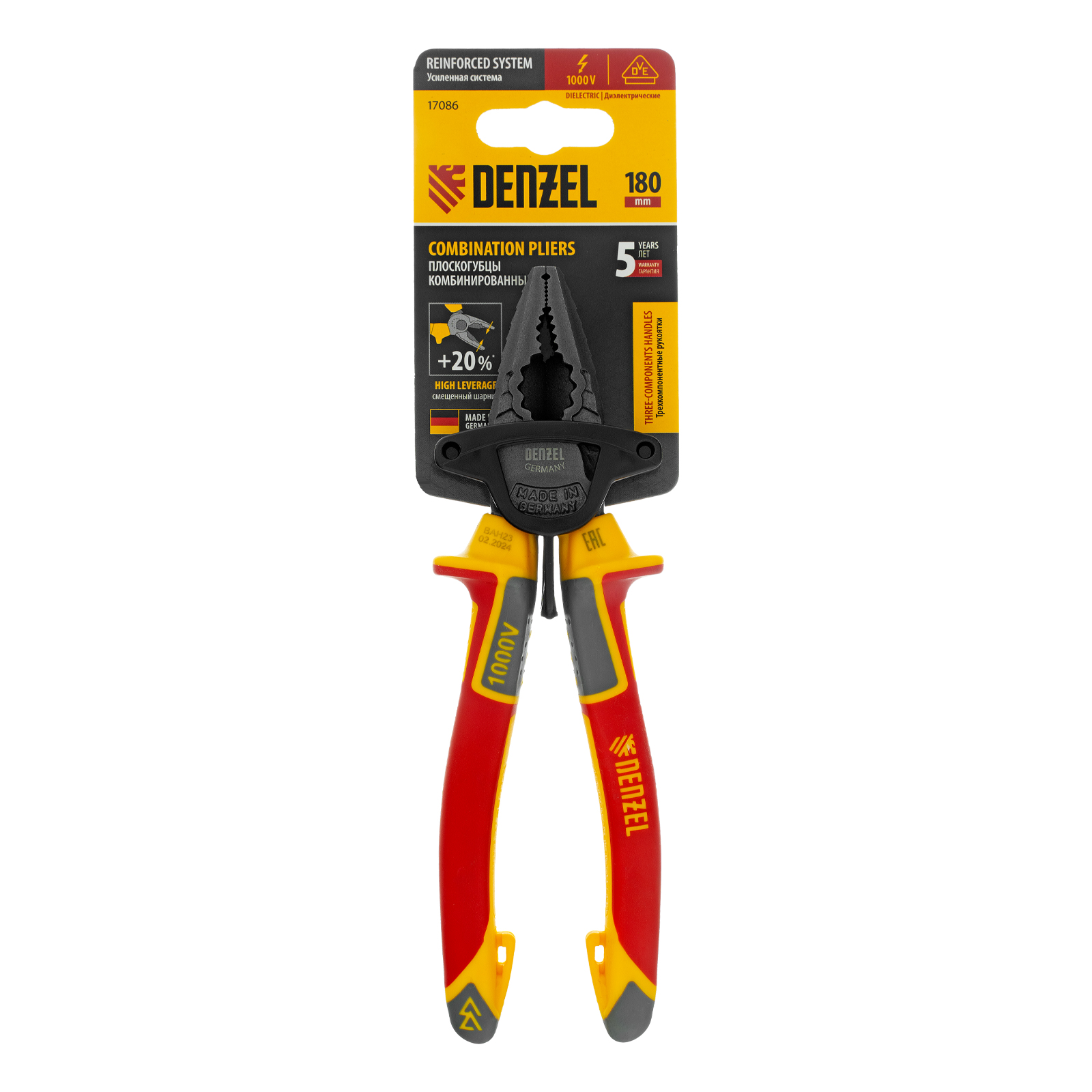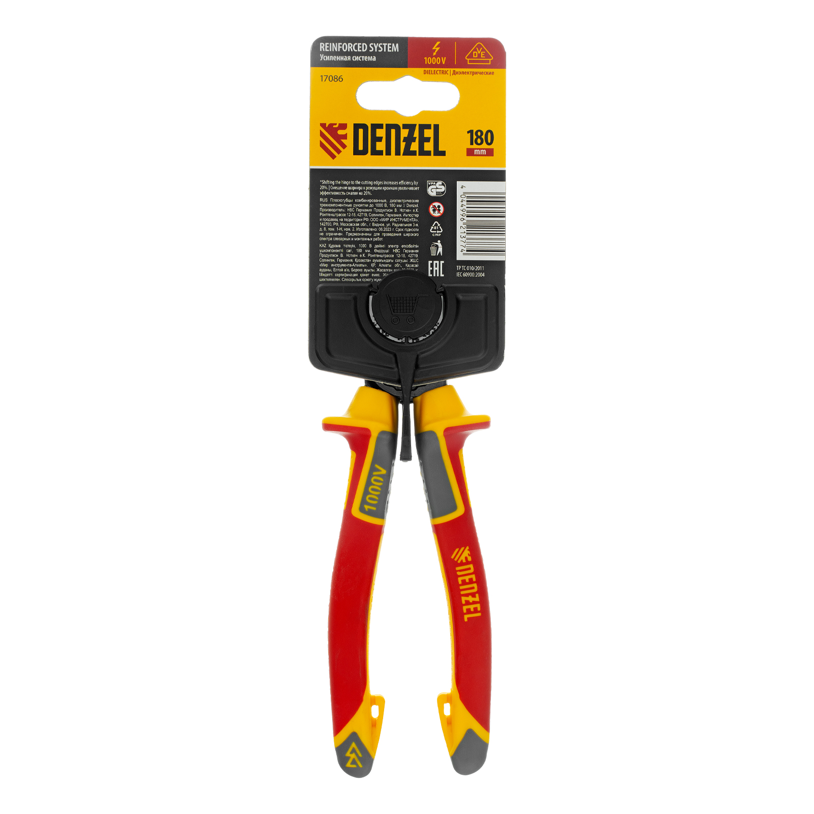 Плоскогубцы комбинированные, диэлектрические трехкомпонентные рукоятки до 1000 В, 180 мм Denzel в Екатеринбурге