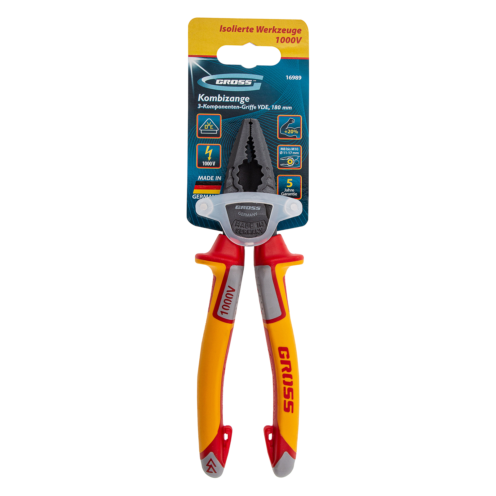 Плоскогубцы комбинированные, диэлектрические трехкомпонентные рукоятки до 1000 В, 180 мм Gross в Екатеринбурге