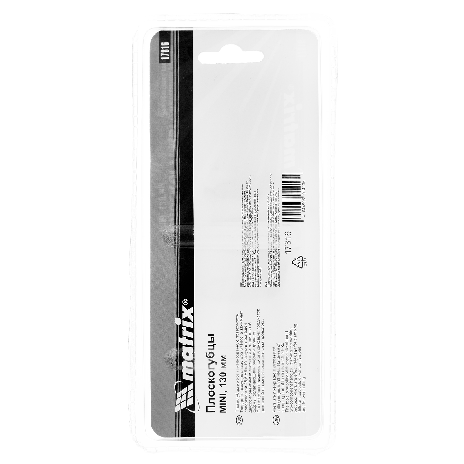 Плоскогубцы Mini, 130 мм, никелированные, авторазжим, двухкомпонентные рукоятки Matrix в Екатеринбурге